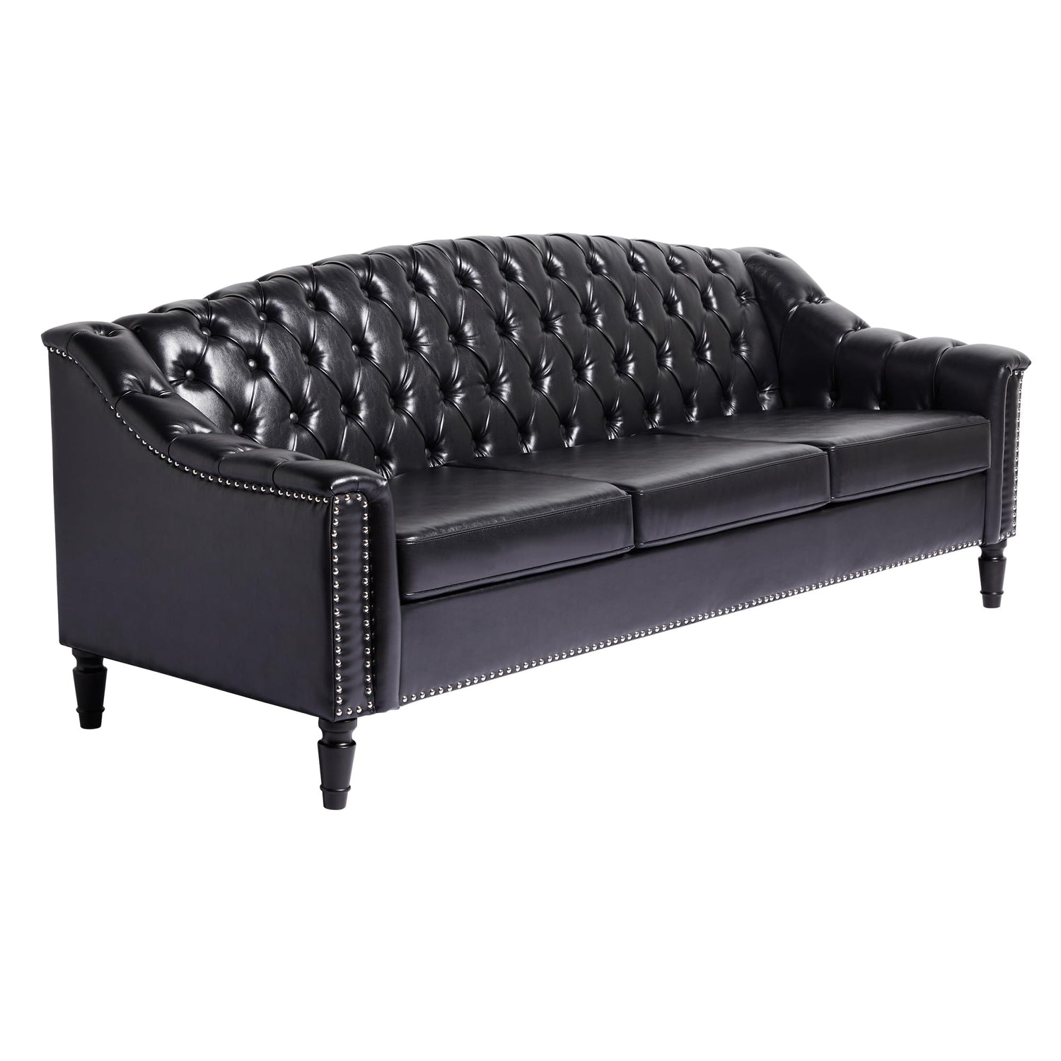Chesterfield 3-Steater Sofa, 80" Comfy Leather Sofas Couch with Camelback for Living Room, Mid Century Modern 3 Deep Seats Couch for Apartment Bedroom, Office (PU-3-Steater Sofa, Black)