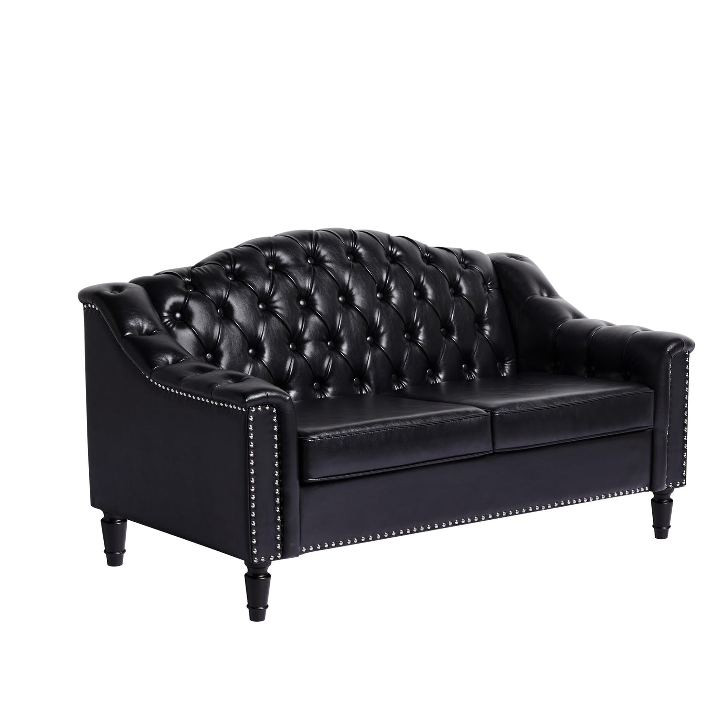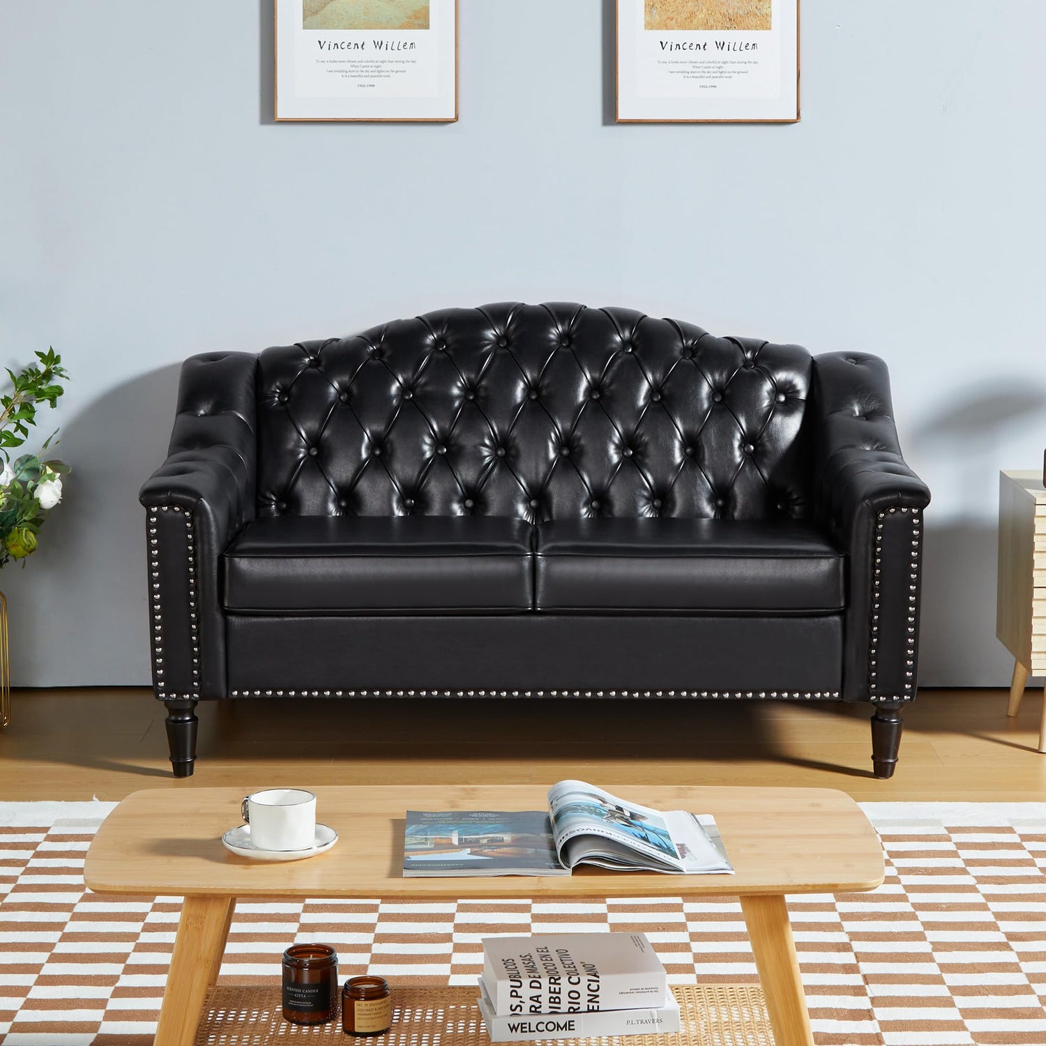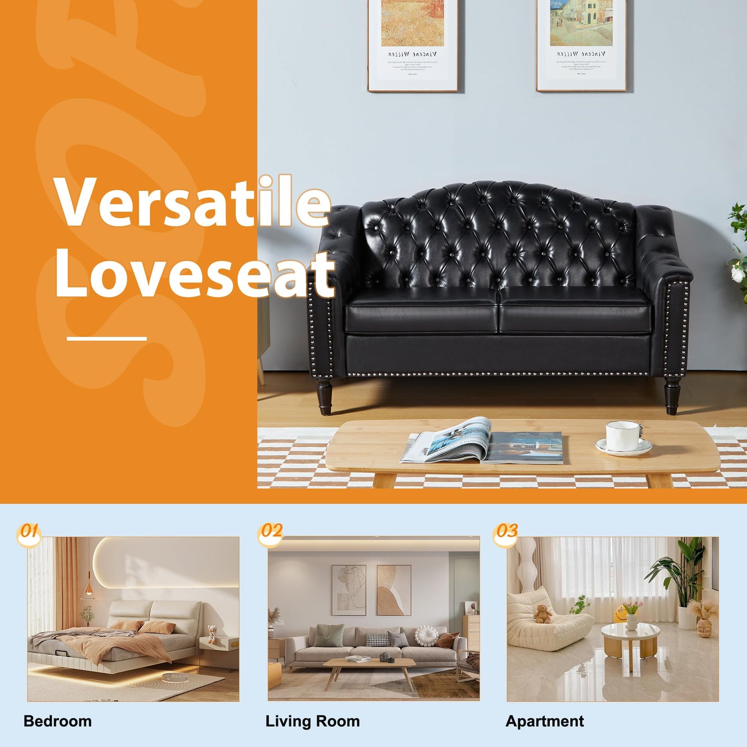 Chesterfield Loveseat, 55" Leather Love Seat Sofa, Comy Small Sofa Counch with Camelback for Small Spaces, Mid Century Modern 2 Deep Seats Couch for Apartment Living Room, Bedroom (PU-Loveseat, Black)
