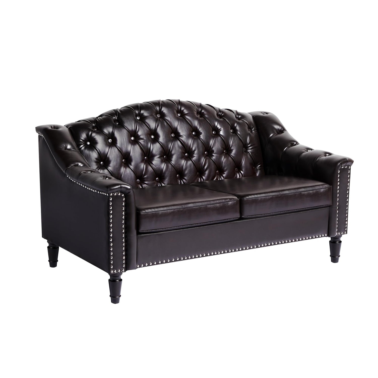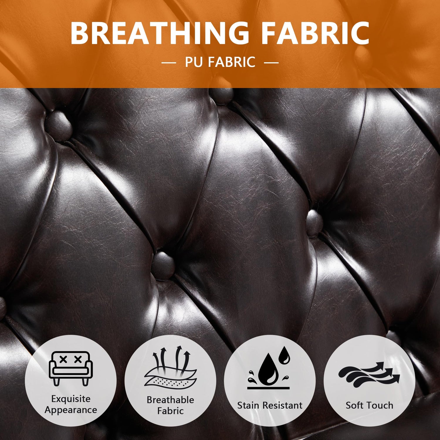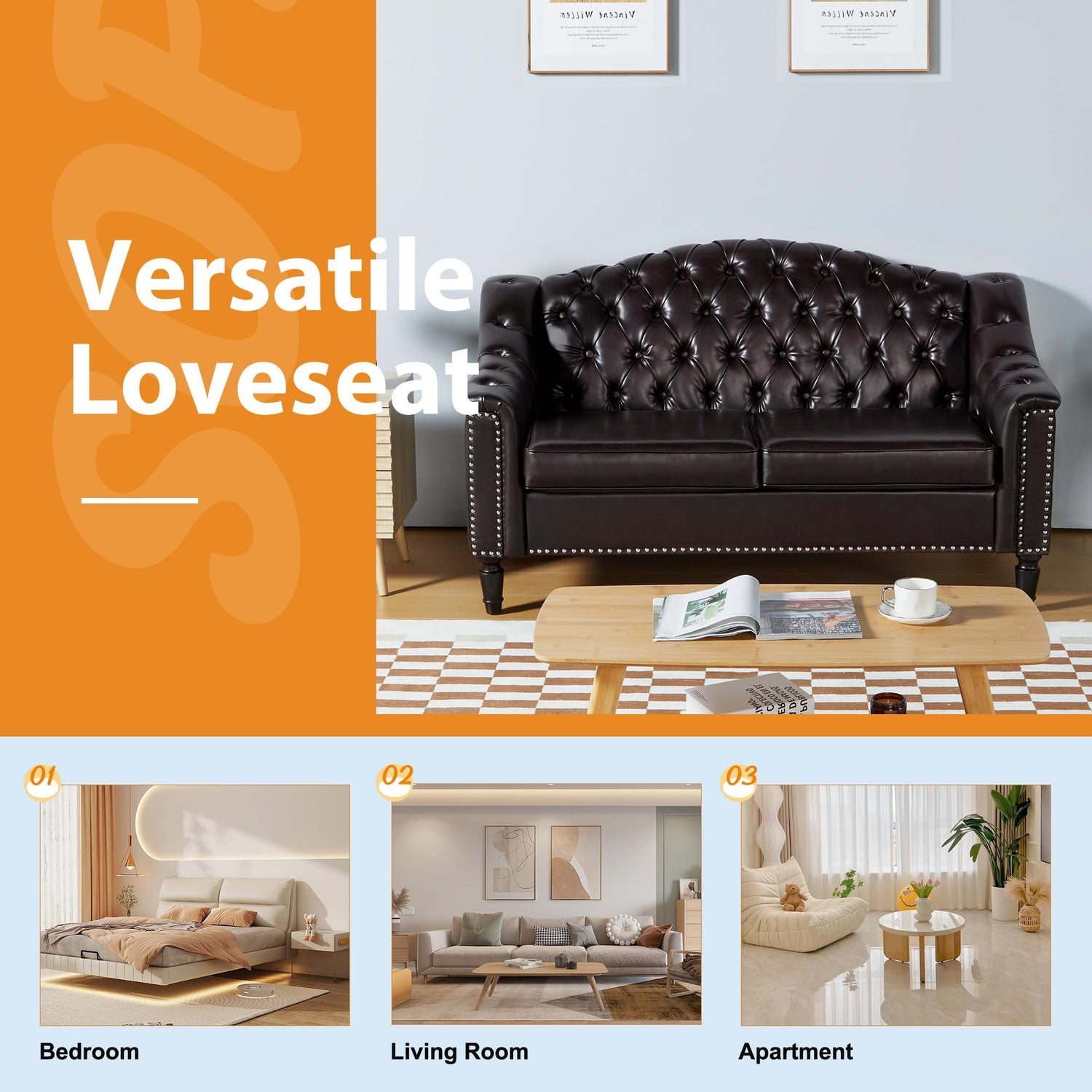Chesterfield Loveseat, 55" Leather Love Seat Sofa, Comy Small Sofa Counch with Camelback for Small Spaces, Mid Century Modern 2 Deep Seats Couch for Apartment Living Room, Bedroom (PU-Loveseat, Brown)