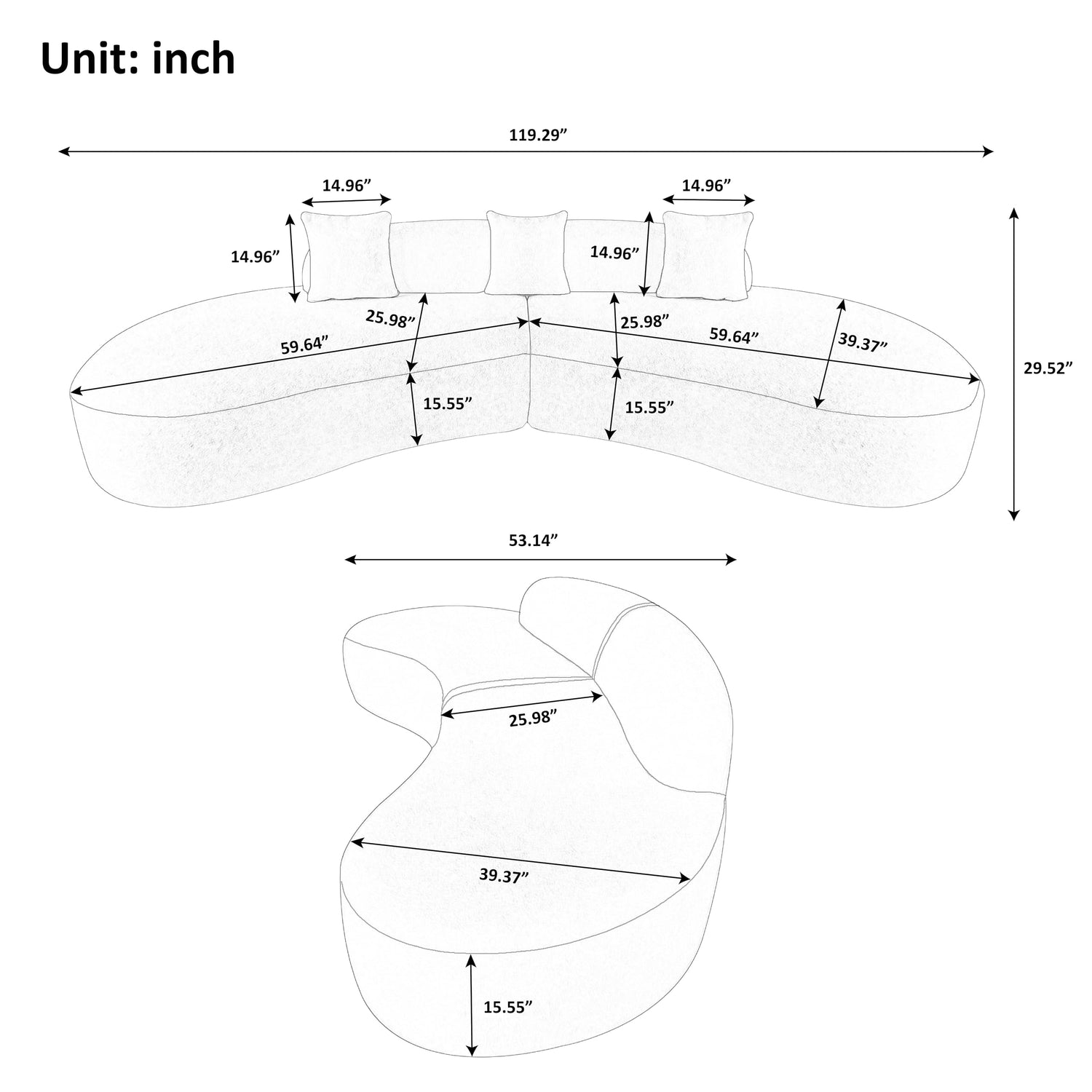 model number: Unique Curved Sectional Sofa
