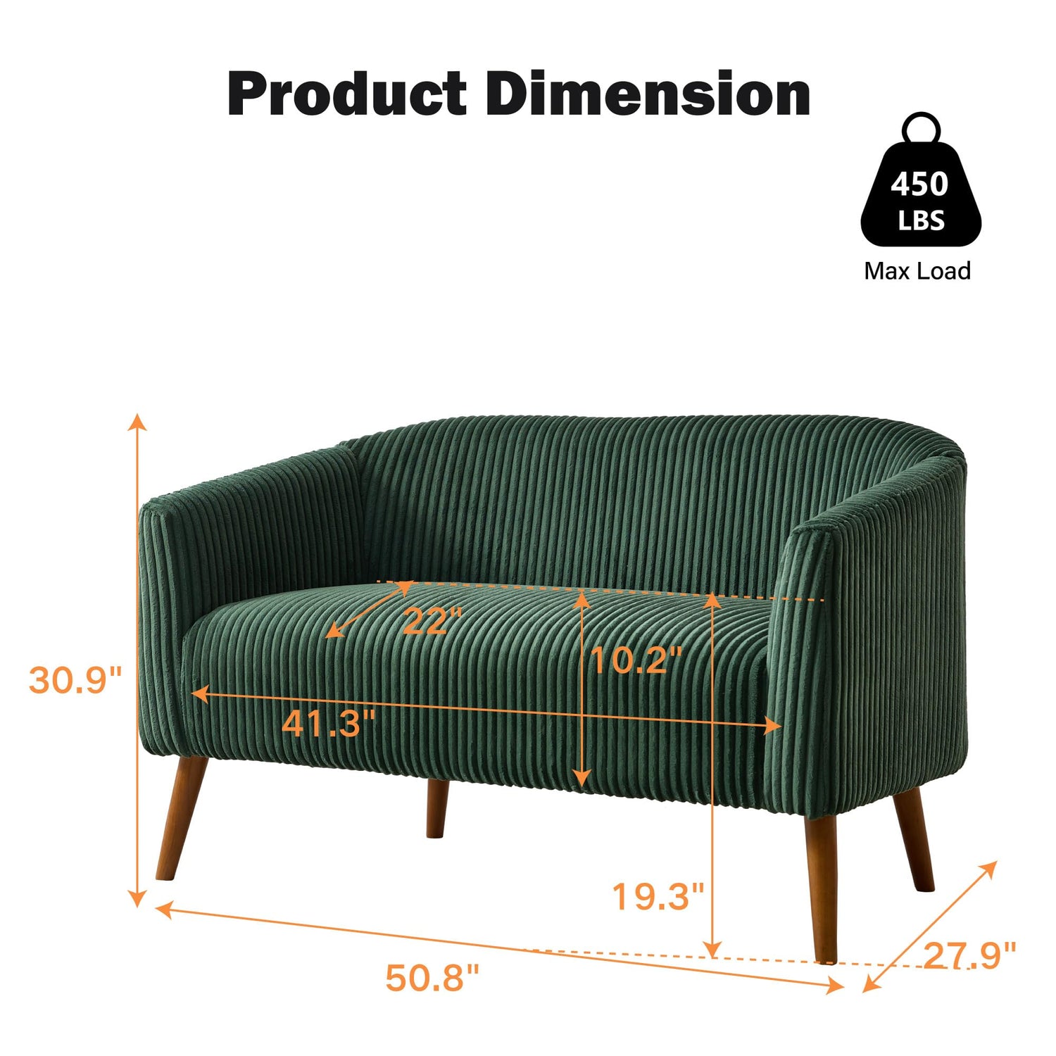 Chifee & Vingol 50.8" W Small Loveseat for Small Spaces with Wood Legs,Green