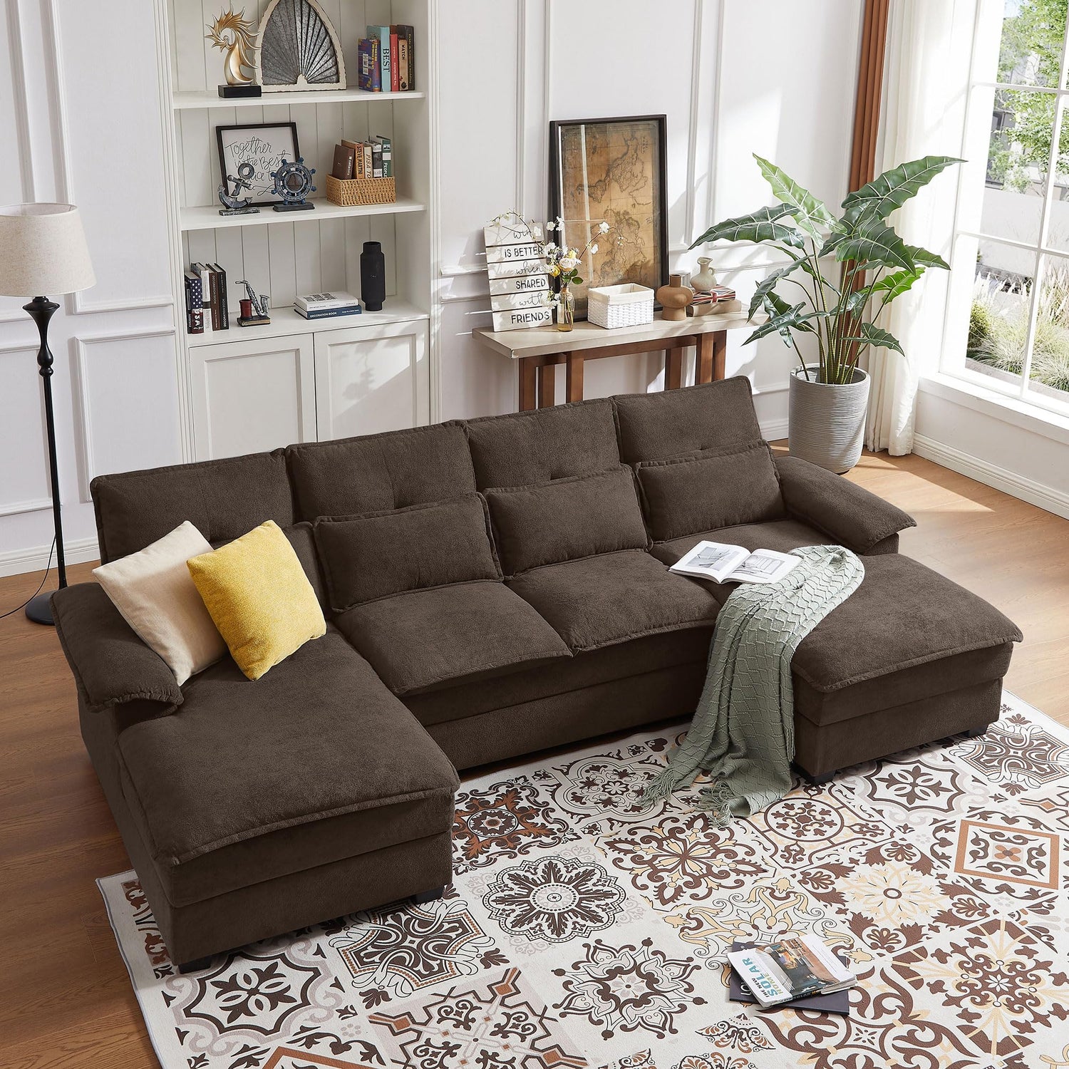 Chireca 110" Convertible Sectional Sofa, U Shaped Comfy Cloud Couch with Double Chaise and Padded Armrests, Modern Upholstered 4 Seater Sofa for Living Room, Apartment, Office, Coffee