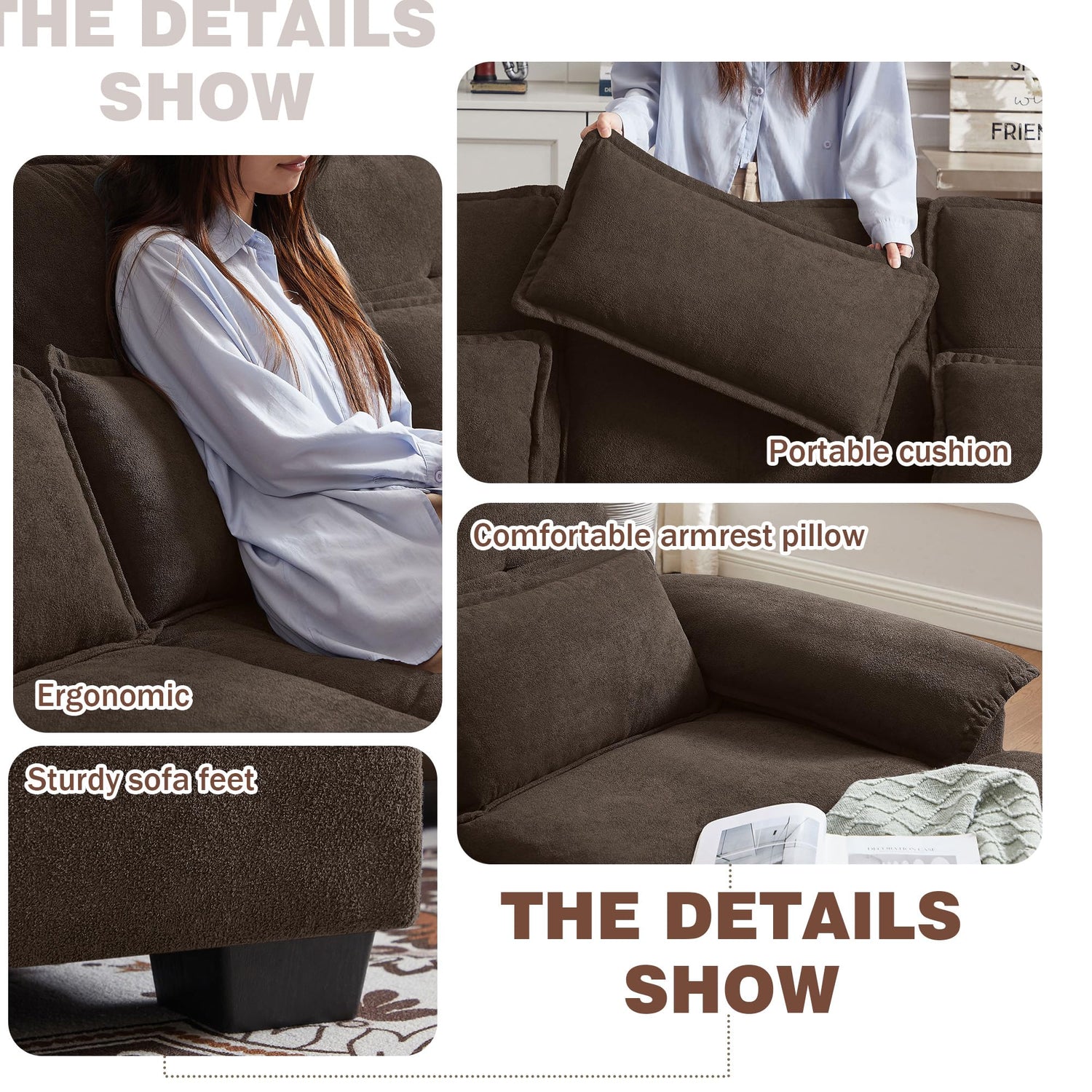 - 【Double chaise】The U-shaped cloud sofa has two chaise areas, with a seat depth of 38.58 inches and a seat width of 29.92 inches, allowing you to relax your legs and recline on the sofa for rest, work, study, etc