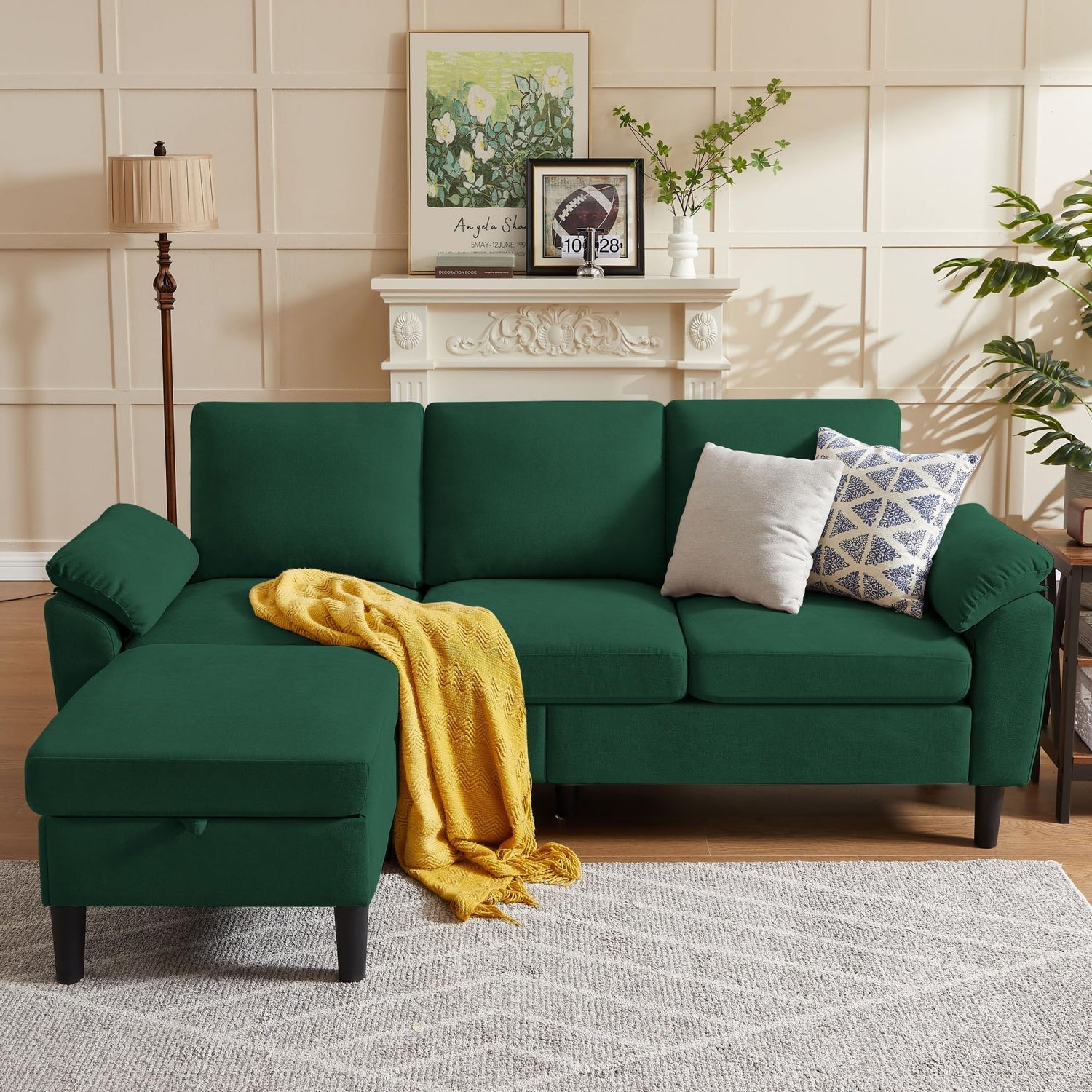 Chireca 80" Convertible Sectional Sofa, Small L Shaped 3 Seat Couch with Reversible Storage Chaise, Modern Polyester Fabric Sofa Couches for Living Room, Apartment and Small Space, Green