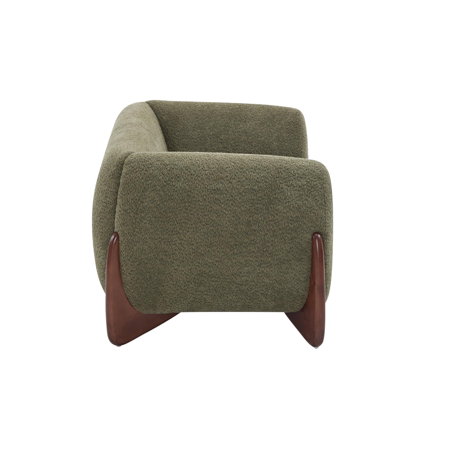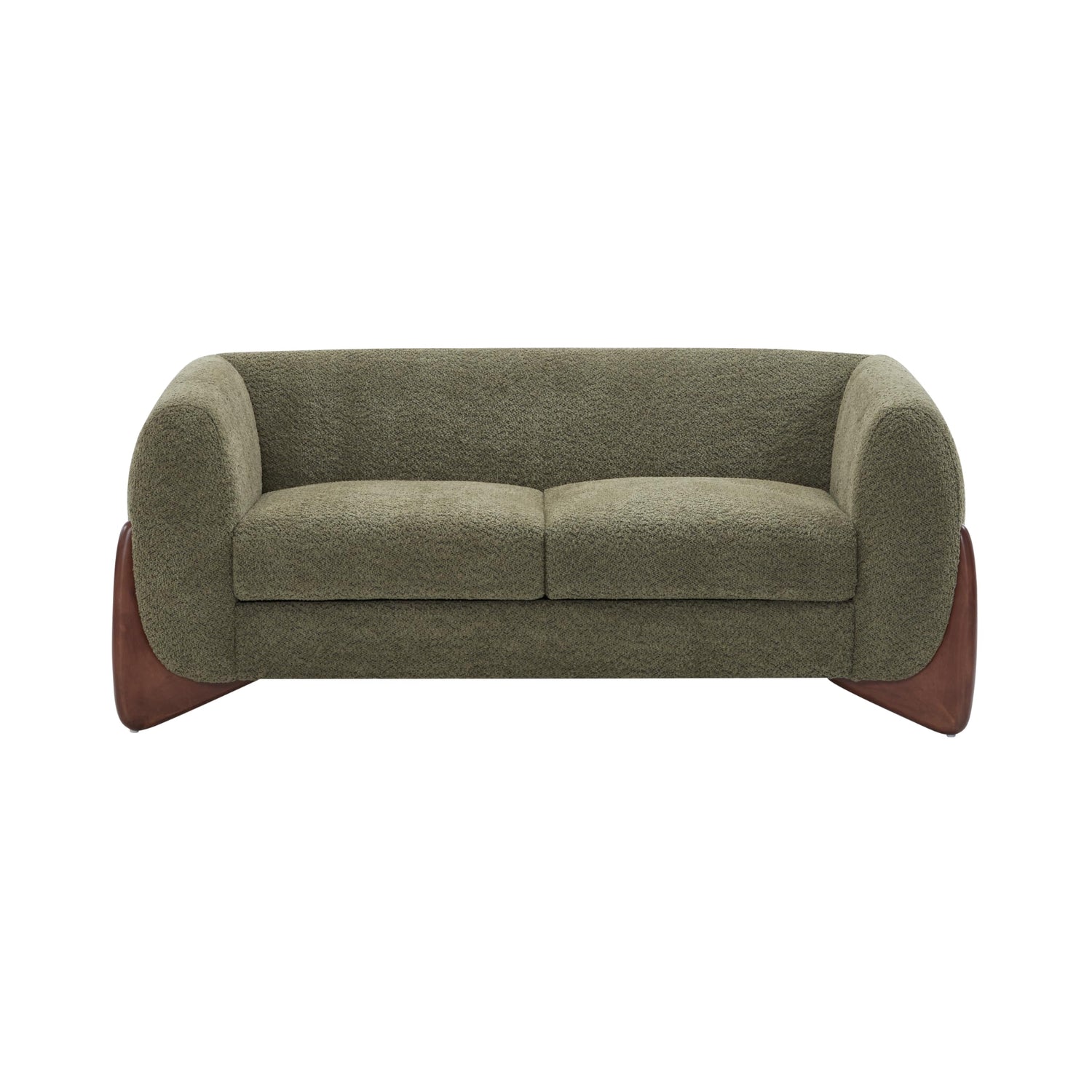 Christopher Knight Home Alma 63" Boucle Loveseat with Wood Legs, 2 Seater Sofa Couches for Living Room, Upholstered Couch Chair, Soft Seating Lounge Sofa Chair, Cozy Loveseat with Armrest, Olive Green