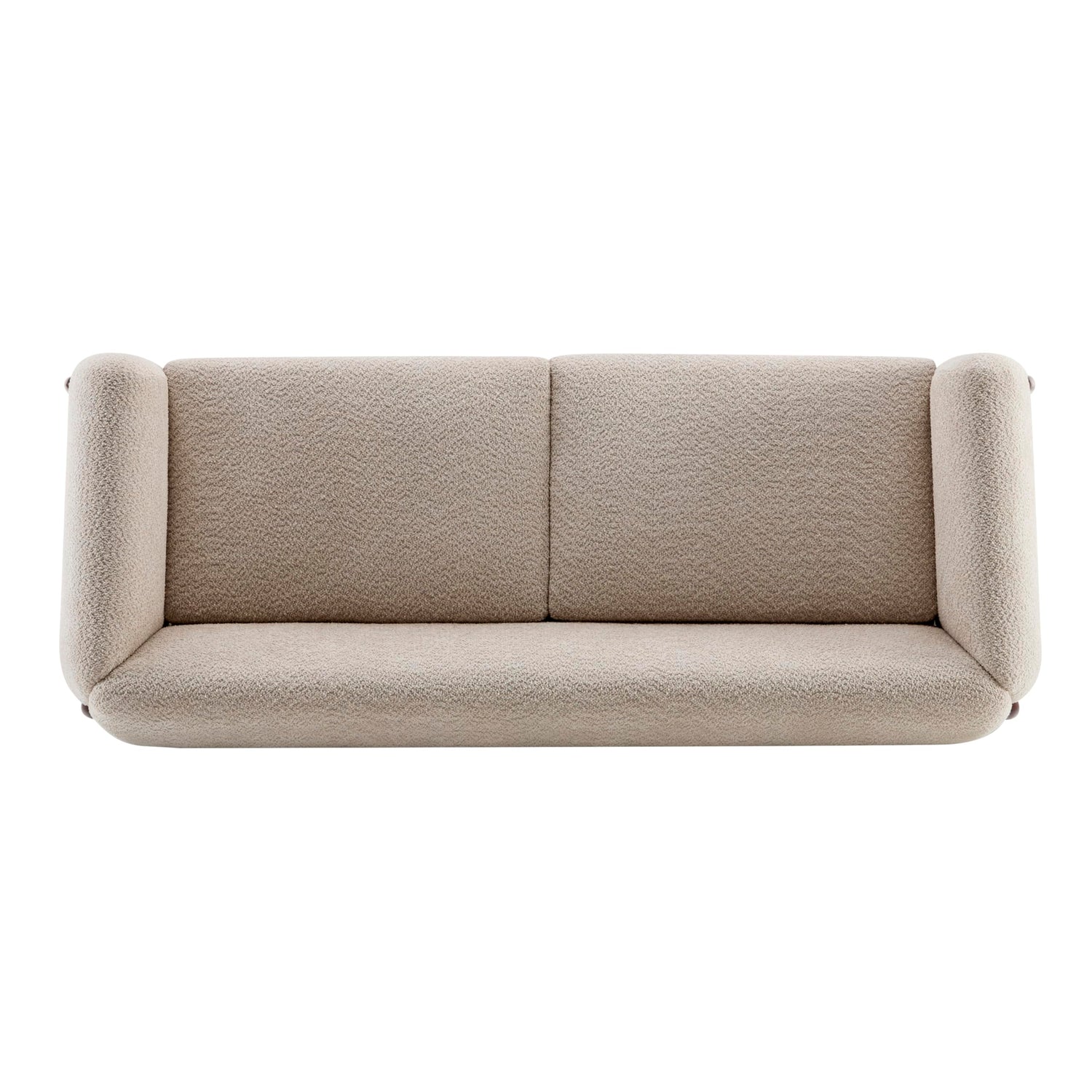 - Lounge Sofa with Wedge Feet Hug: Distinctive birch wedge feet subtly wrap the sofa’s low-profile base, grounding the design with warmth and sophistication. These angular supports not only offer visual contrast against the textured upholstery but also ensure stability, completing the refined, modern look with a touch of mid-century flair