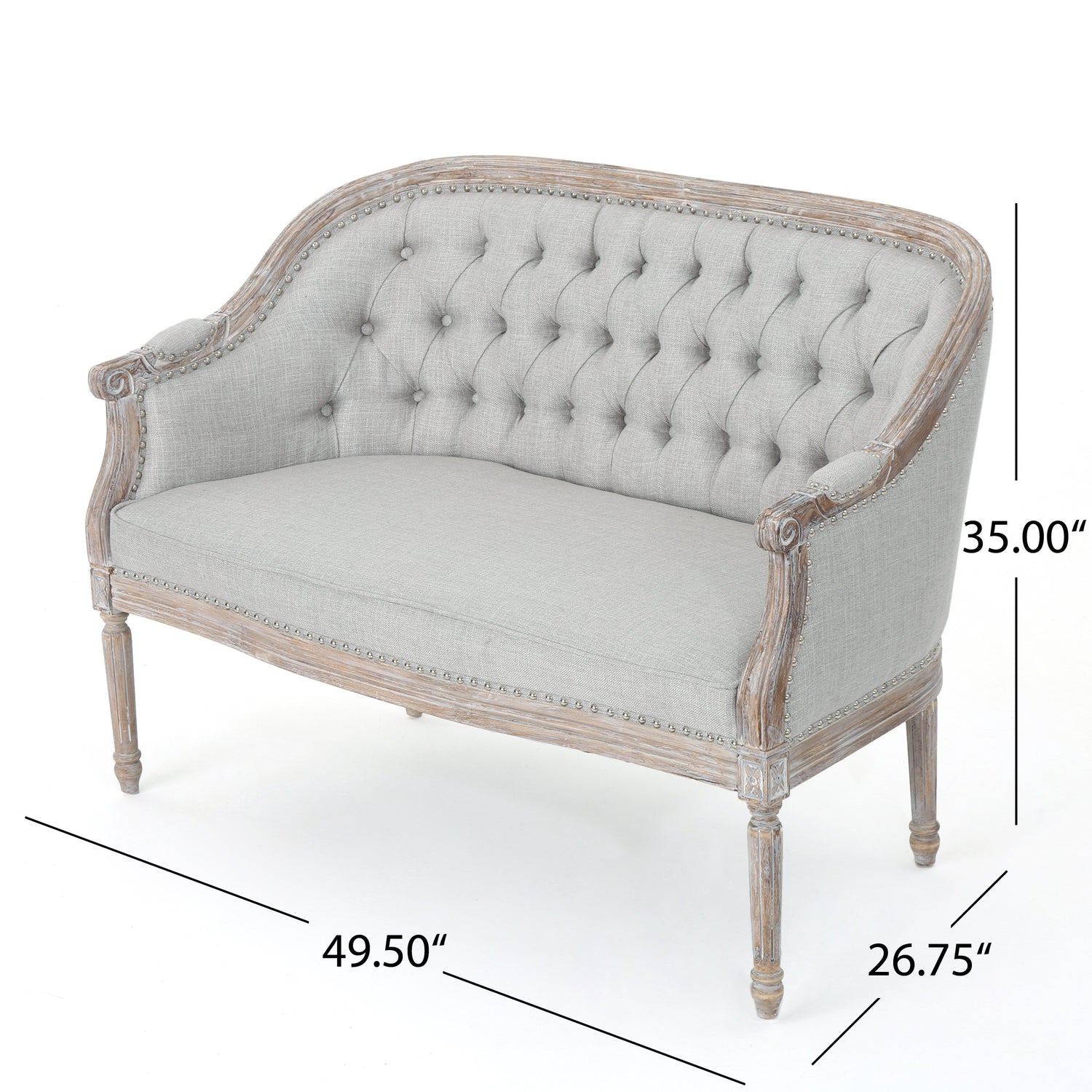 Christopher Knight Home Faye Traditional Fabric Tufted Upholstered Loveseat, Light Gray, Antique