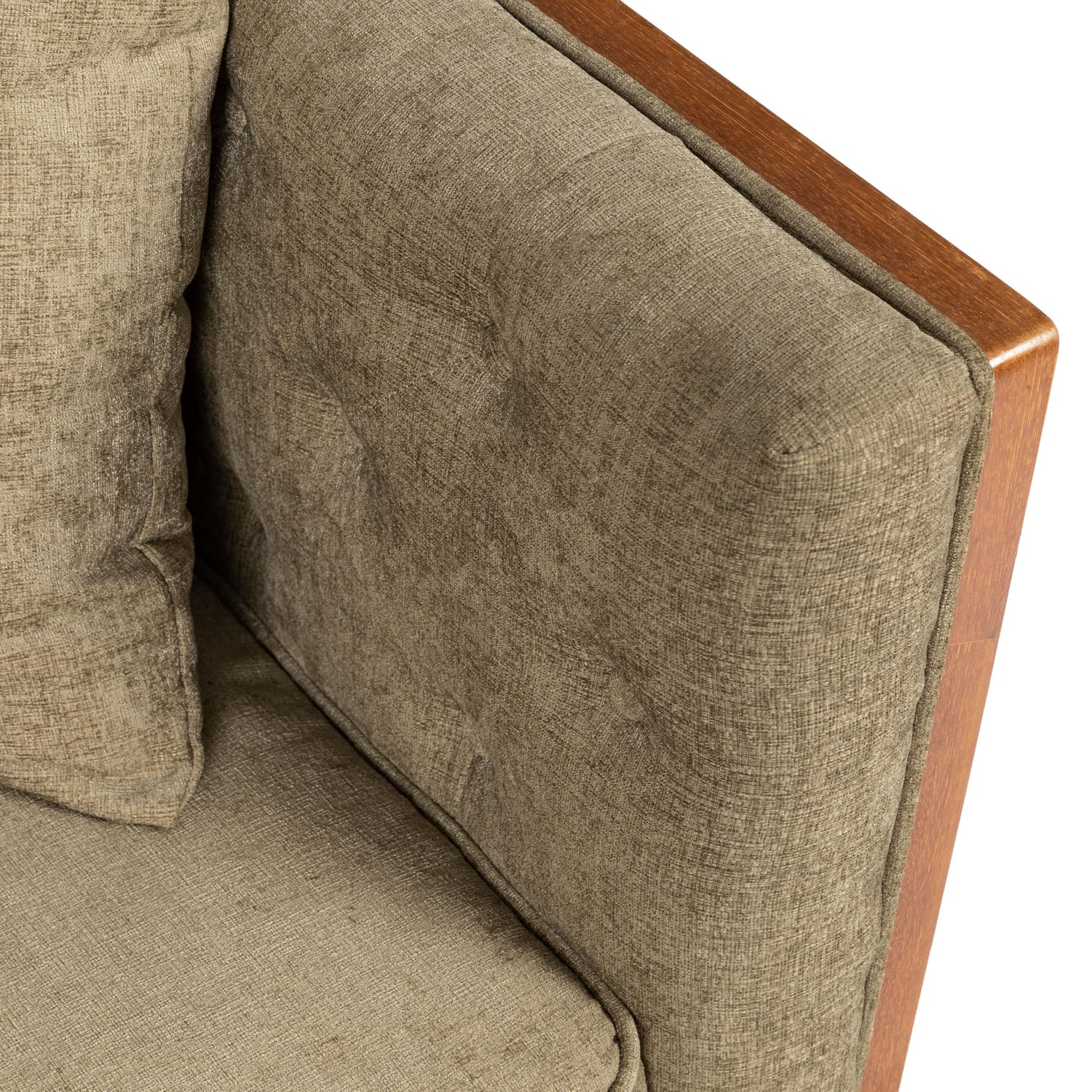 - Accent Pillows and Button Tufted Backrest: The button tufted details in the backrest and four square accent pillows help tie this mid-century modern loveseat together, balancing out its tapered legs and adding an extra dash of comfort to the piece. With armrest that can be used for support or as a safety measure to prevent children from falling.