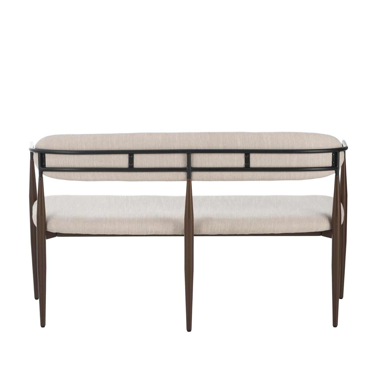 Christopher Knight Home Names Modern Metal Loveseat, Living Room Fabric Upholstered Settee, Curved Open Backrest 2-Seater Sofa, Cozy Couch for Bedroom, Apartment, Home Office, Black+Coffee+Beige