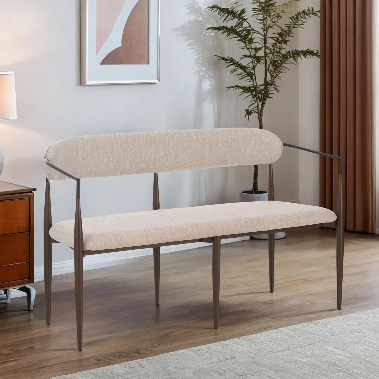 - Comfortable Settee with Fabric Upholstery: The seat and backrest are upholstered in high-quality fabric, providing a smooth, immaculate texture for this piece as well as plush seating for comfort
