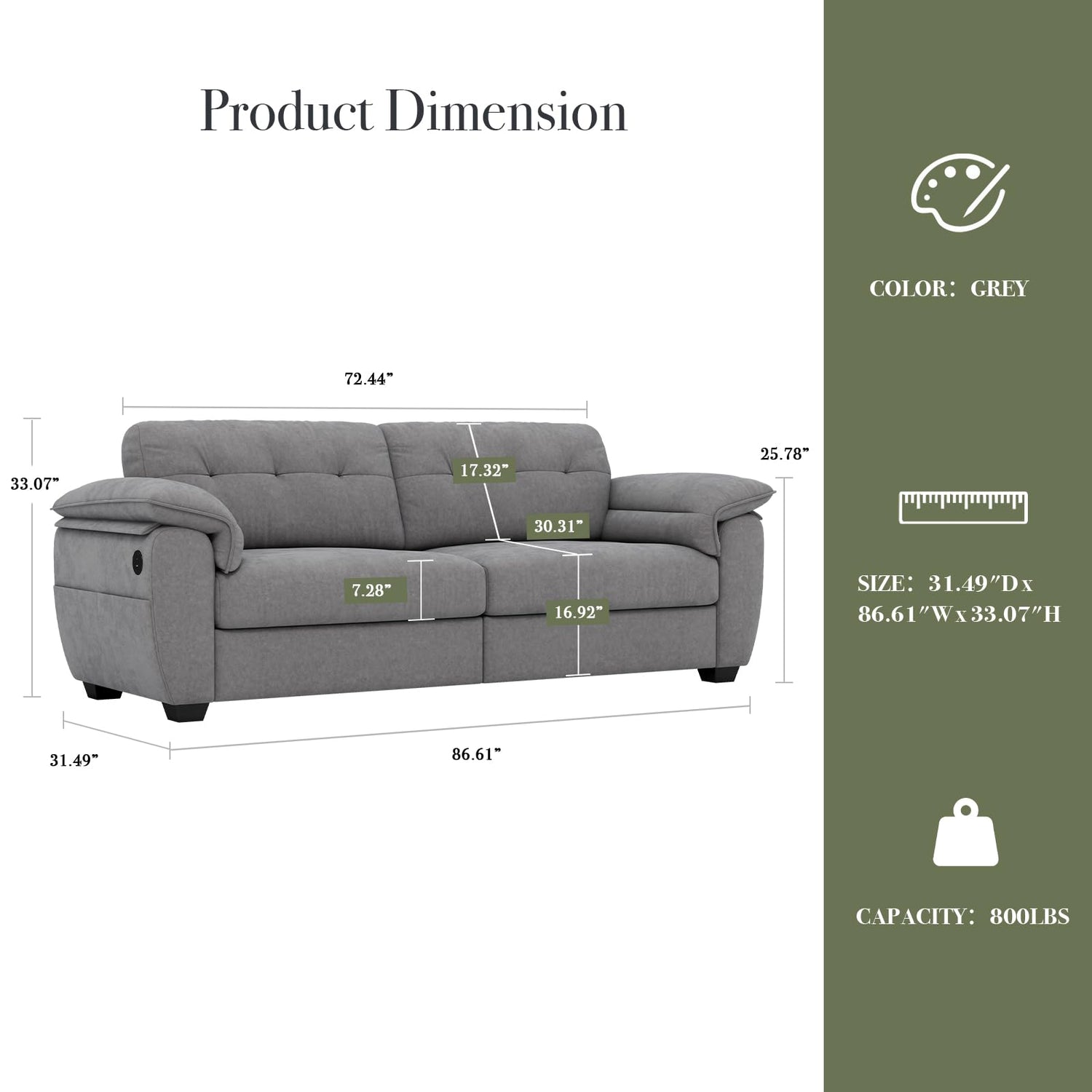 CHYMSUN 87" Modern Sofa, Comfy Sofa Couch w/Extra Deep Seats, 2/3 Seater Couches w/USB Charging Ports & Side Pockets, Sleeper Sofas for Living Room, Apartment, Office (Grey Chenille)