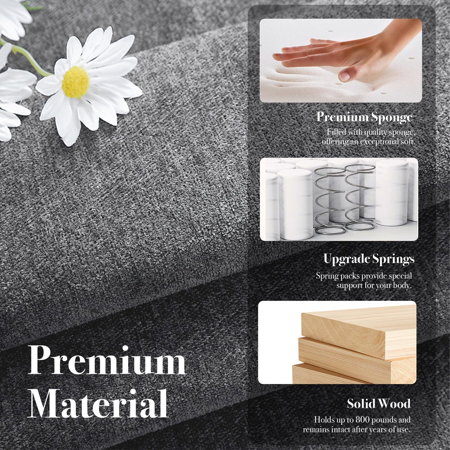 • UNMATCHED COMFORT EXPERIENCE: Experience unparalleled relaxation with the CHYMSUN sofa. Featuring deep seat cushions made from pocket springs and high-resilience foam, it offers both support and softness, making you feel like you're lying on clouds, soothing your tired body after a long day. Thanks to the selection of quality springs and solid wood, the couch retains its shape and comfort, supporting up to 800 pounds, even after years of use