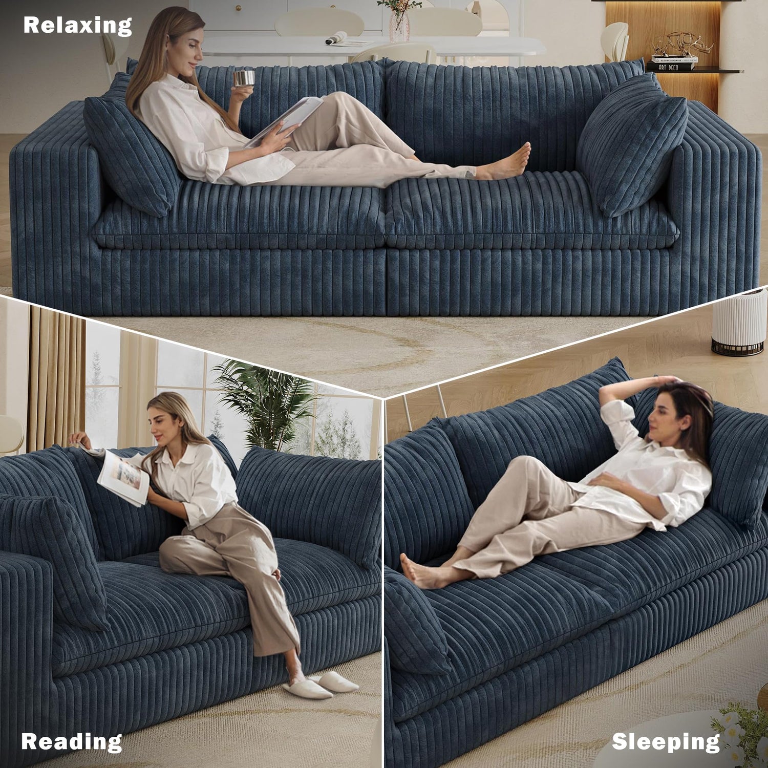 CKEASEAN 78.8" Corduroy Boneless Loveseat Couch with Removable Cushion, Cloud sectional Sofa, No Assembly Required, Compression Sofa in a Box, DlY Combination for Living Room (Blue)