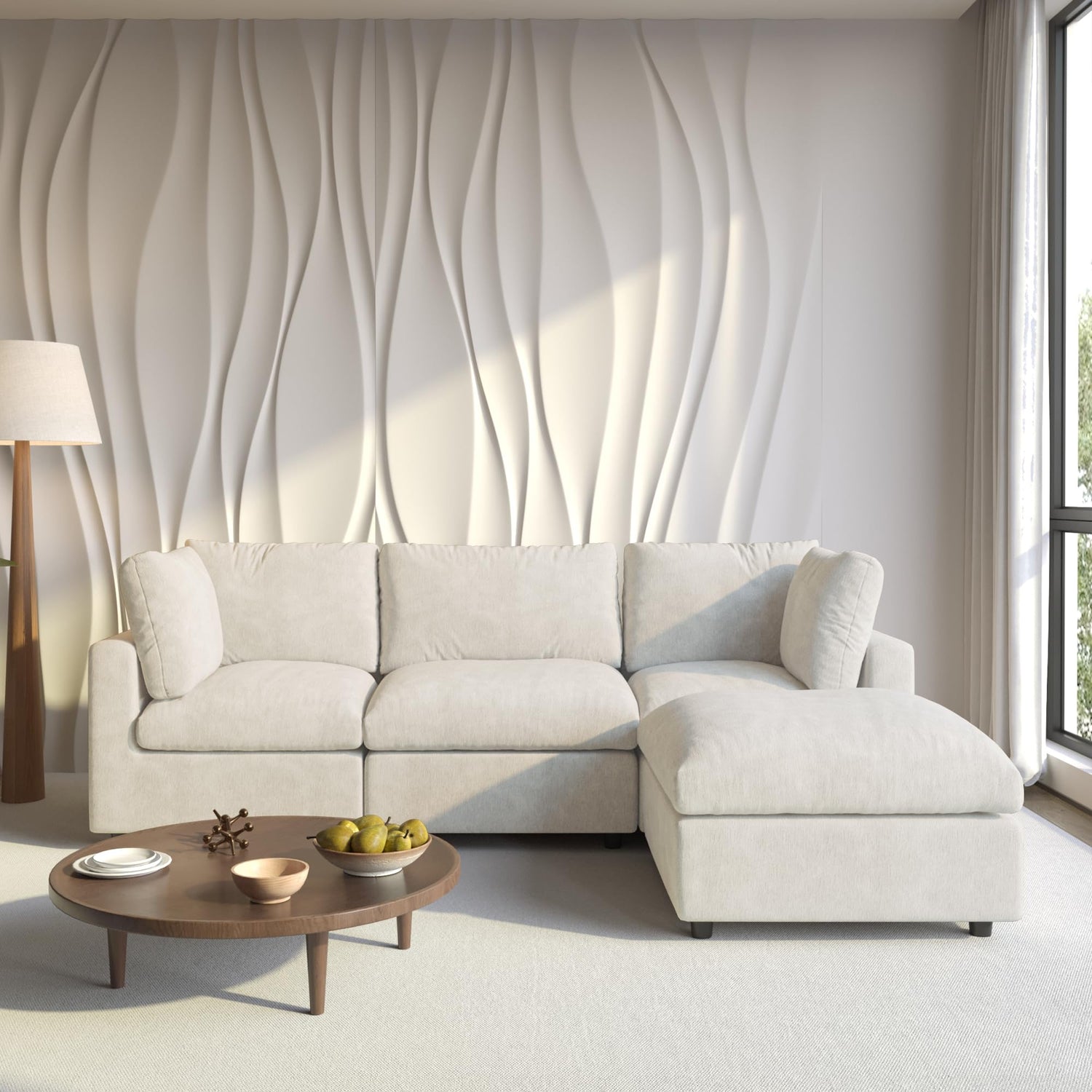 Cloud Sectional Couches for Living Room,100.5" Convertible L Shaped Couch with Ottoman, 4 Seater Modular Sectional Sofa,Deep Seater Furniture Sets,Beige