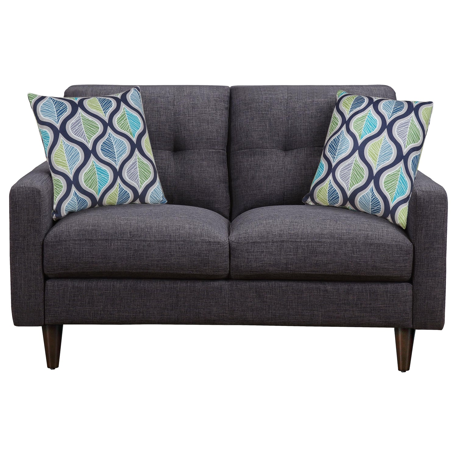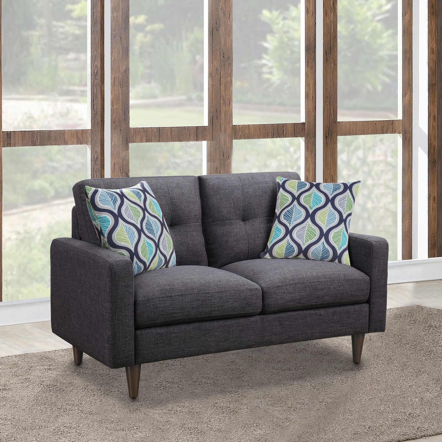Coaster Home Furnishings - Watsonville - Wood & Fabric - Upholstered Tufted Loveseat with Track Arms, and Accent Pillows - Living Room - Gray - 552002