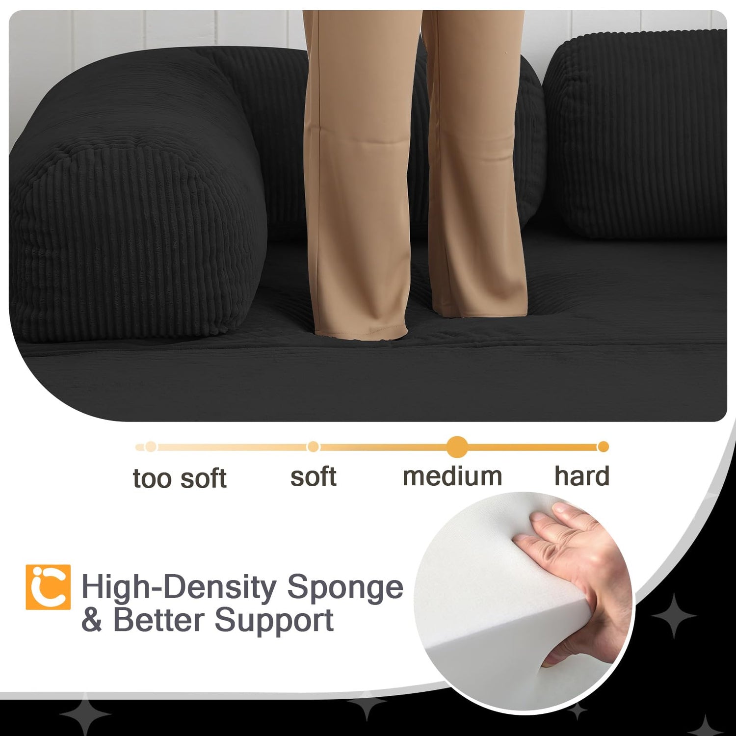 • Removable Fabric Cover - The floor couch sofa is made of a three-dimensional corded fabric, and is soft and breathable, adding a touch of elegance to your home. The fabric cover is removable and machine washable, making it easy to keep your sofa looking fresh and clean. The cylindrical handrail design enhances the aesthetic appeal and adds an extra layer of comfort