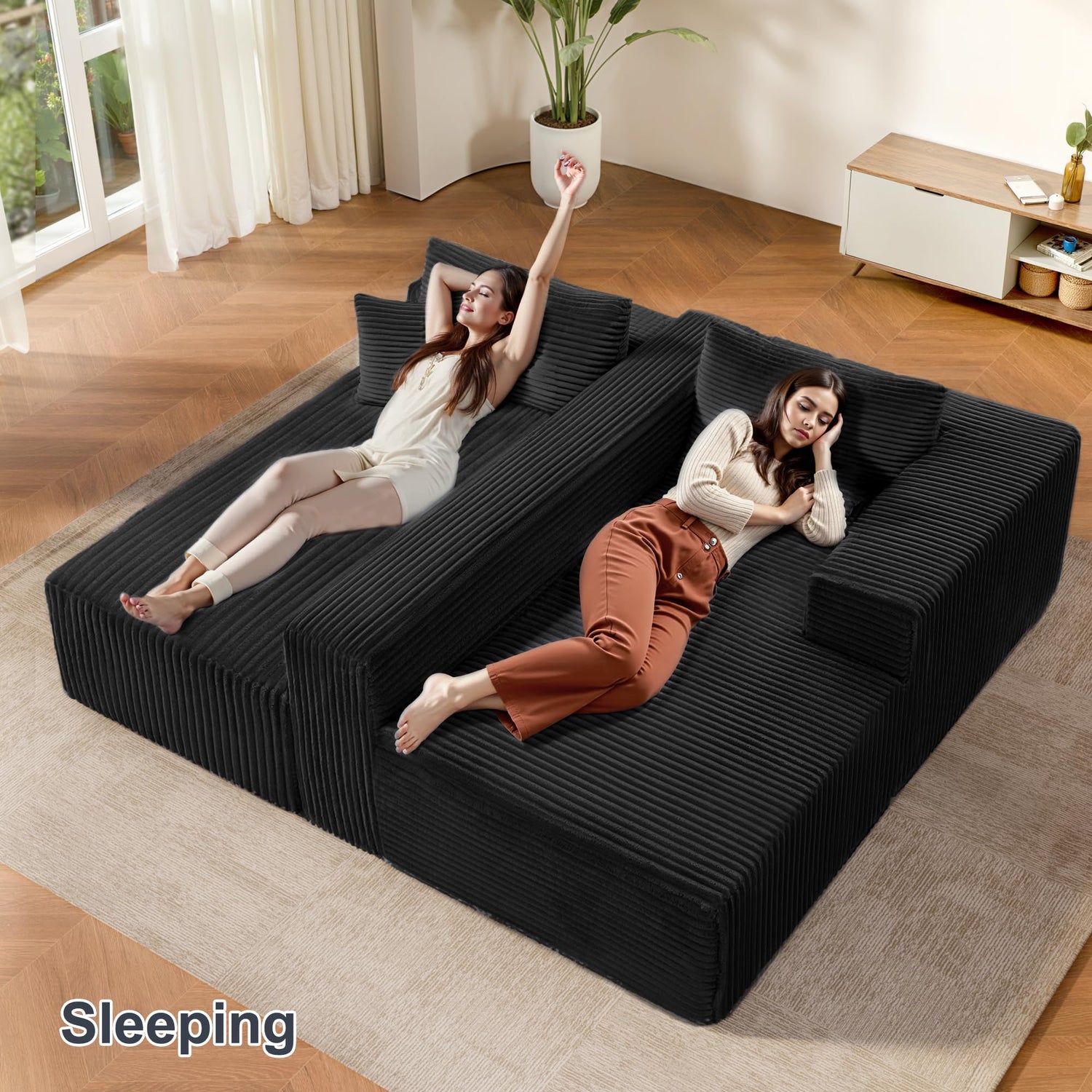 • Versatile Sectional Couches: Perfect for living rooms, apartments, bedrooms, guest areas, and children's play zones, our sofa bed is designed to adapt to any space while inviting kids to enjoy its plush surface. Its modular design ensures easy maneuverability through narrow hallways, attics, and tight doorways, maximizing the use of every corner in your home.