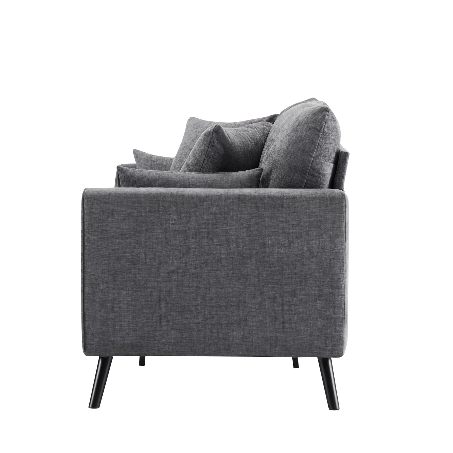 - 【Includes Pillows and Side Pocket】This 2 Seater Loveseat Couch includes four matching throw pillows — two square and two lumbar — to support your back, cradle your arms, or simply hug during a quiet moment. A discreet side pocket on one armrest adds extra convenience, offering a smart place to tuck away your remote, book, or tablet.