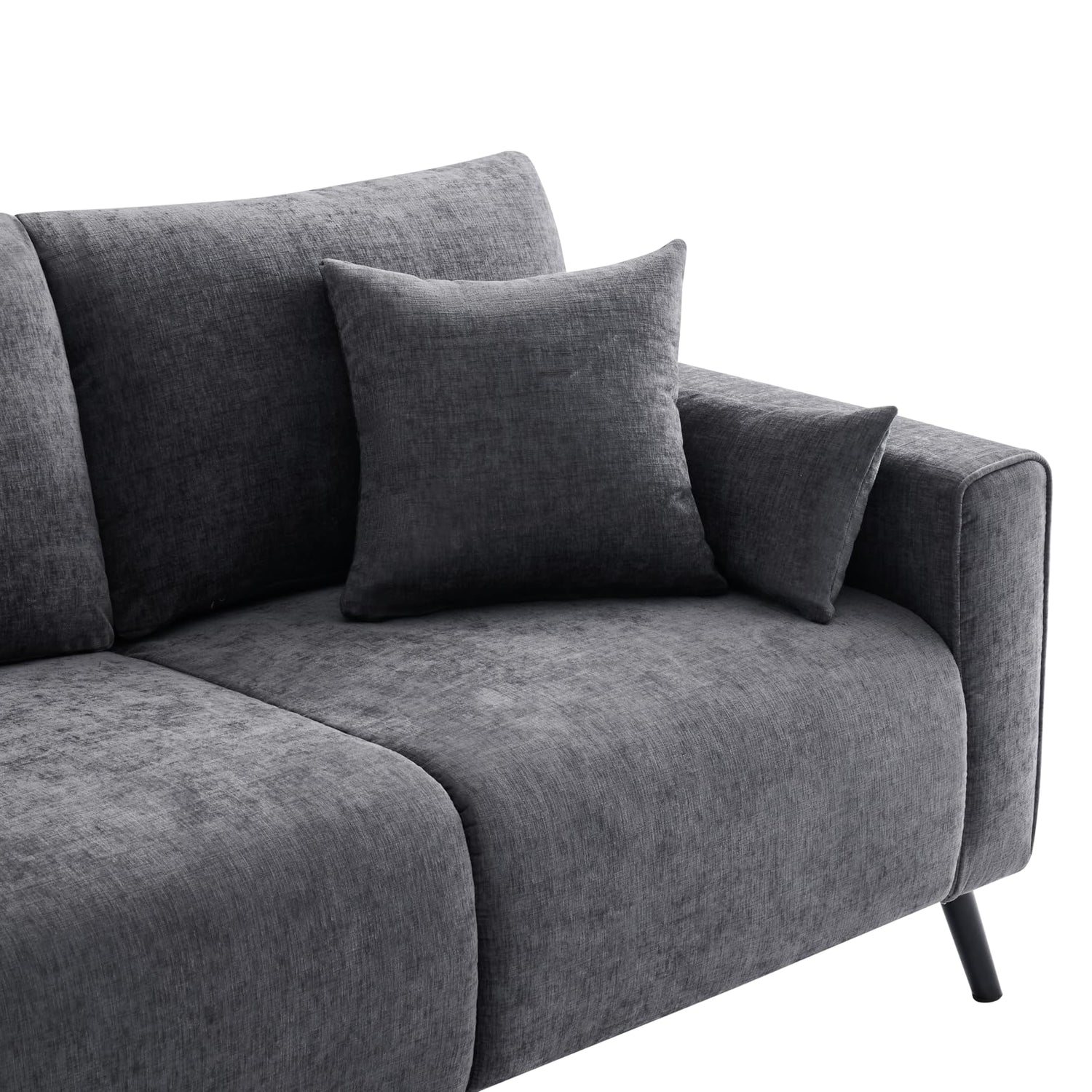 - 【Soft-Touch Chenille Fabric】To balance a warm, cozy feel with a modern aesthetic, this small Loveseat sofa is upholstered in a specially selected chenille fabric. From afar, the fabric subtly shifts in shade with light and angle, adding depth and dimension. Up close, the texture of this small couch is rich yet soft to the touch. Durable, breathable, and resistant to discoloration, it’s built to stay beautiful through everyday use.