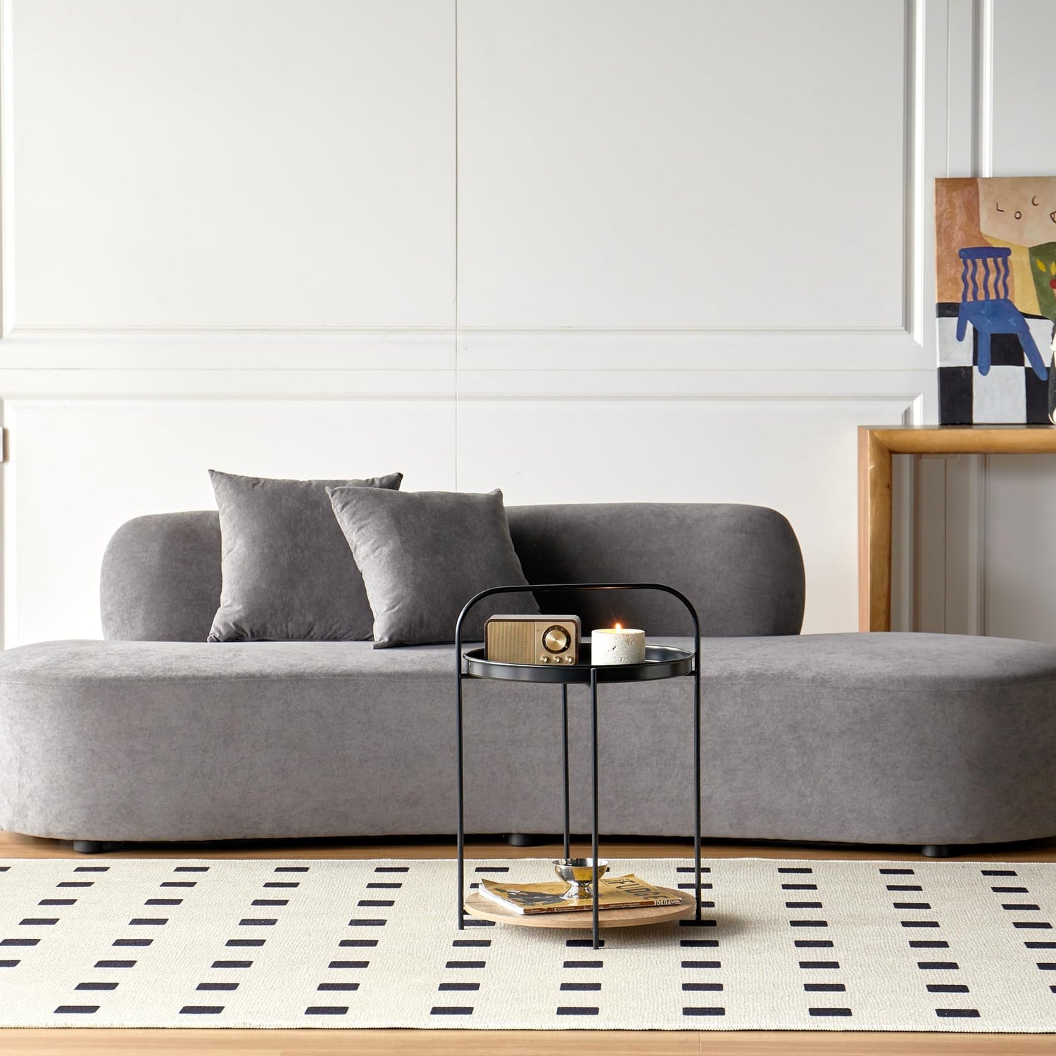 • MODERN MINIMALIST FURNITURE : This elegant sofa's sleek design complements various home decor themes, making it a good addition to any living room, office, or apartment setting; Throw pillows included