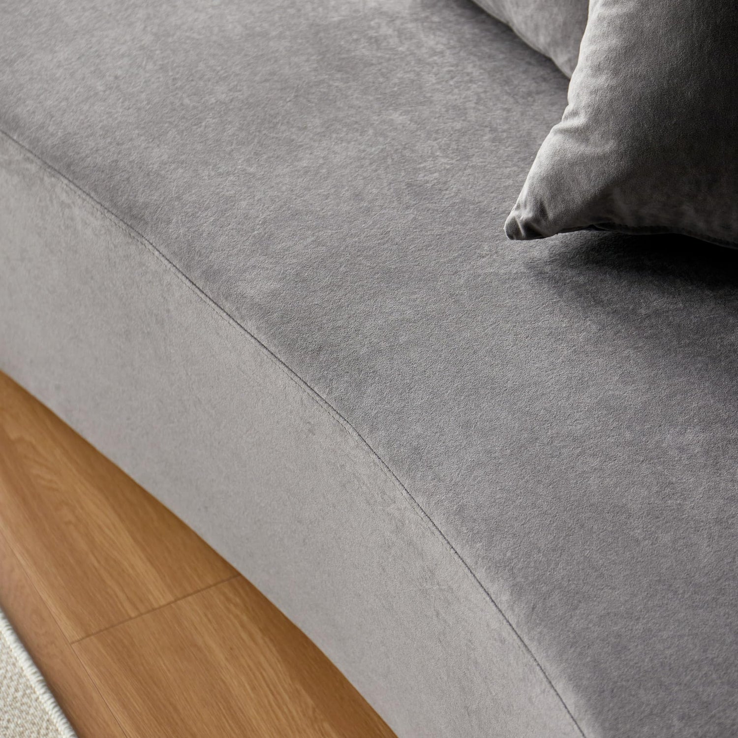Container Furniture Direct 90" Curved Sofa with Throw Pillows, 4 Seater Luxury Velvet Couch with Half Moon Design and High-Density Foam, Ideal for Modern Living Room, Office & Apartment, Grey