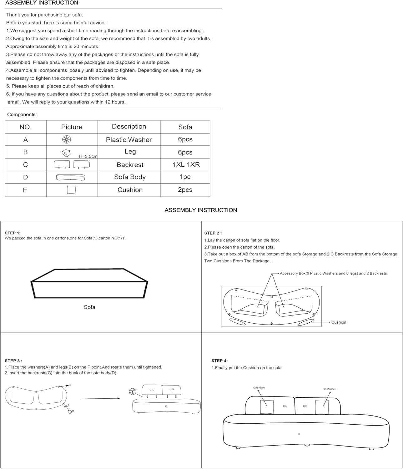 • ERGONOMIC HALF MOON DESIGN: The graceful curved shape not only enhances aesthetic appeal but also provides superior ergonomic support making this sofa couch perfect for lounging or entertaining guests