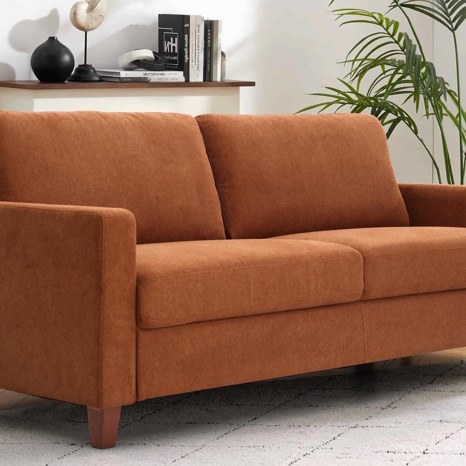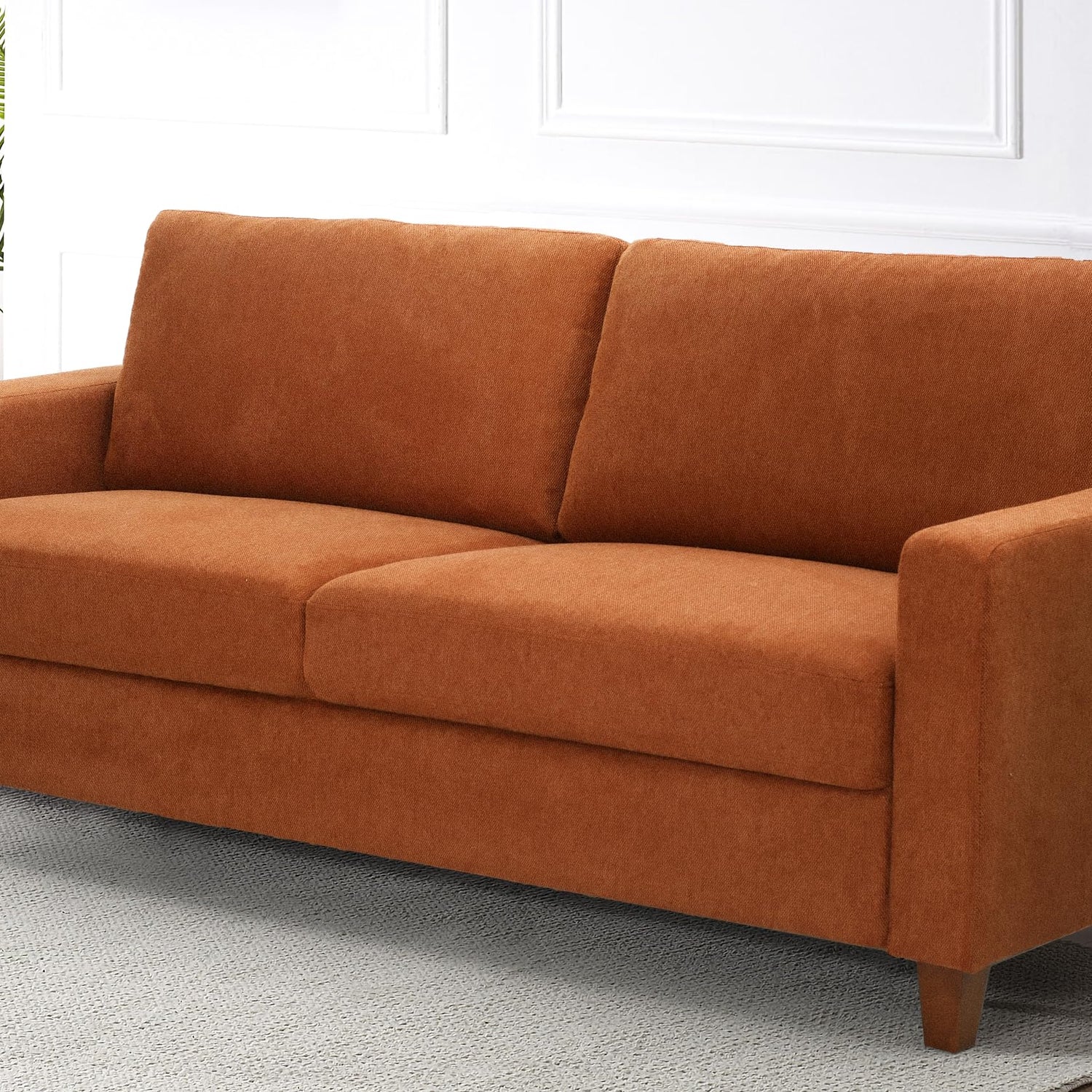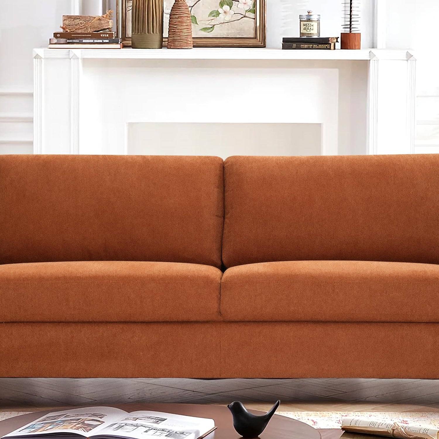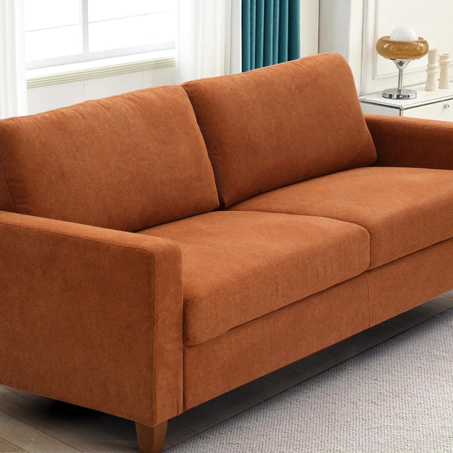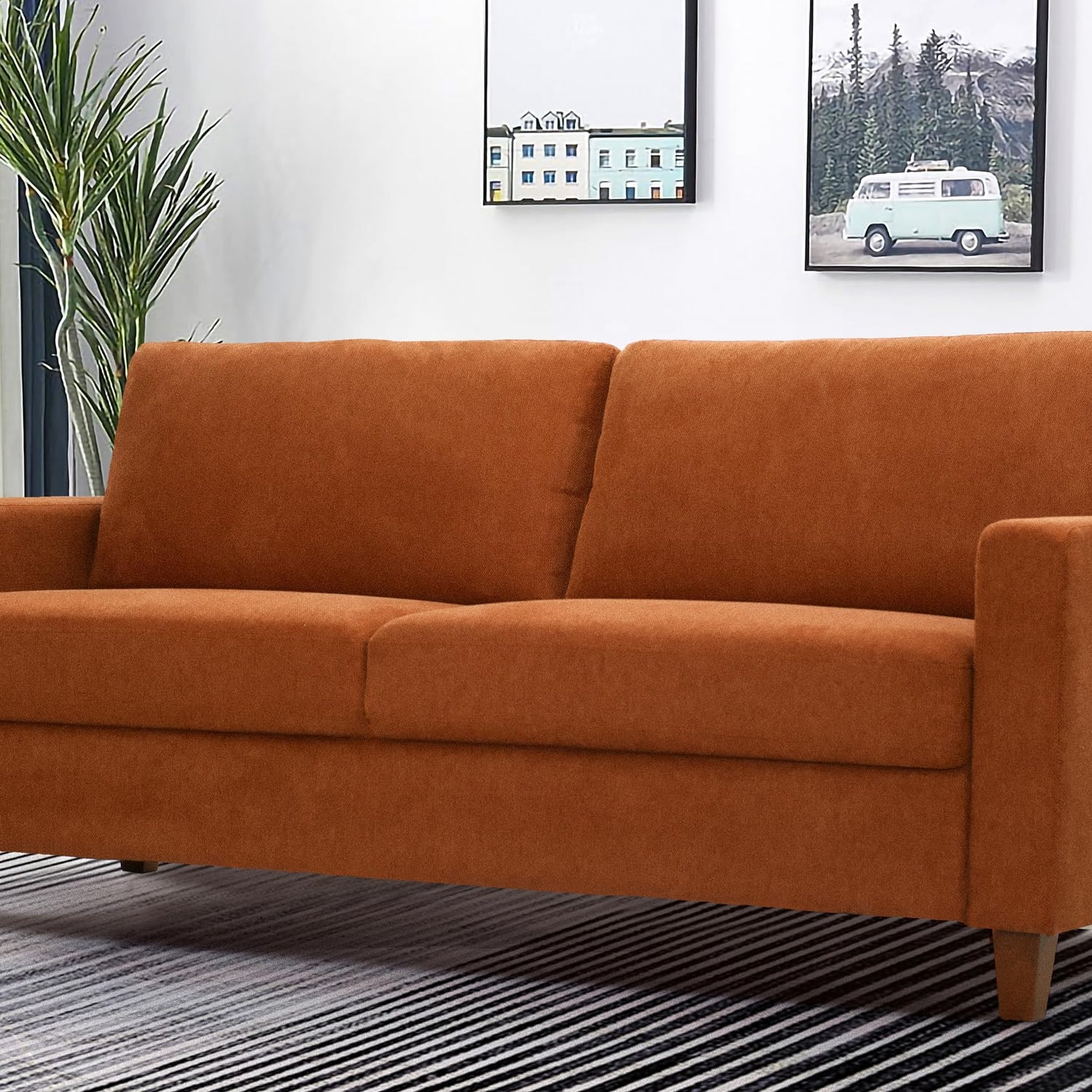 Container Furniture Direct Miles Mid Century Modern Couch for Small Spaces, Living Rooms, Apartments, and Condos, 3 Seater Sofa with Reversible Back Pillows, 77" Wide, Orange