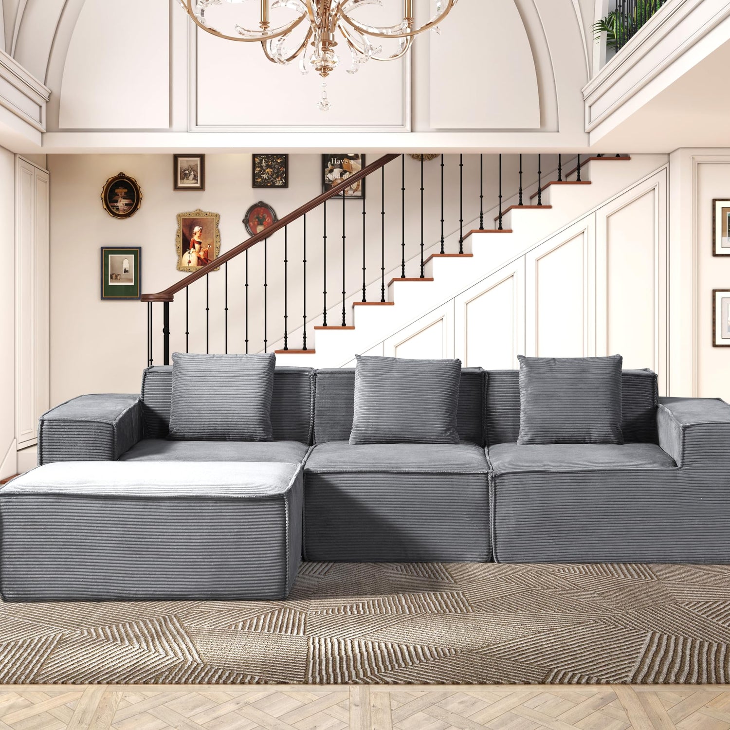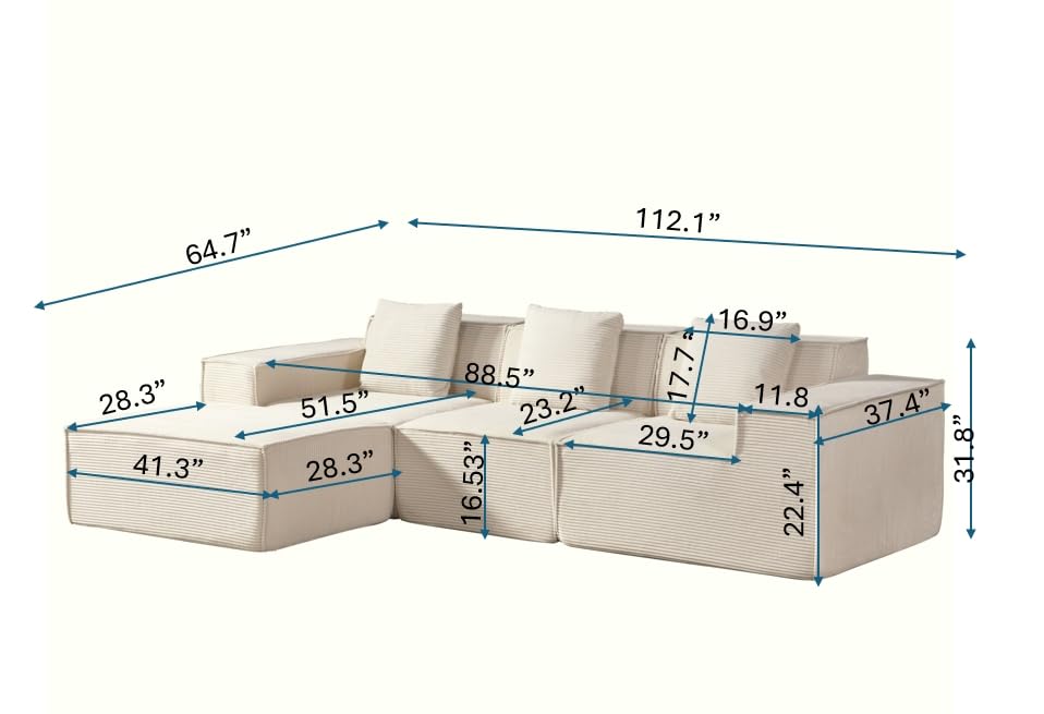 - CLOUD-LIKE COMFORT: Sink into extra-deep 23.2" cushions on this cloud couch, complete with a supportive high back and 3 plush pillows. The soft corduroy fabric adds cozy texture, making this sectional couch the ultimate relaxation spot for your living room.