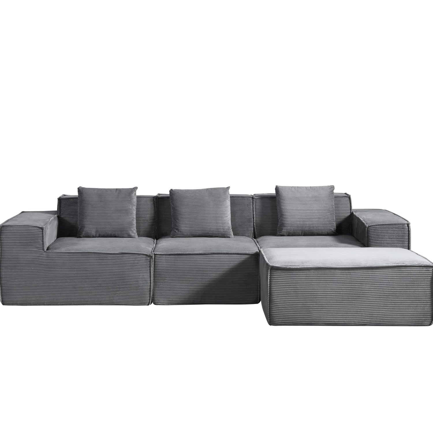 - STYLISH & FUNCTIONAL: A modern sectional couch with timeless corduroy fabric, available in Black, Dark Green, Dark Grey, Red Orange, Ginger Yellow, and Beige. The ottoman doubles as a chaise lounge, extra seat, or footrest to complete your living room setup.