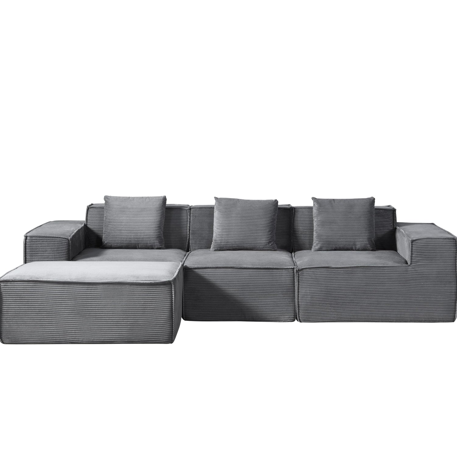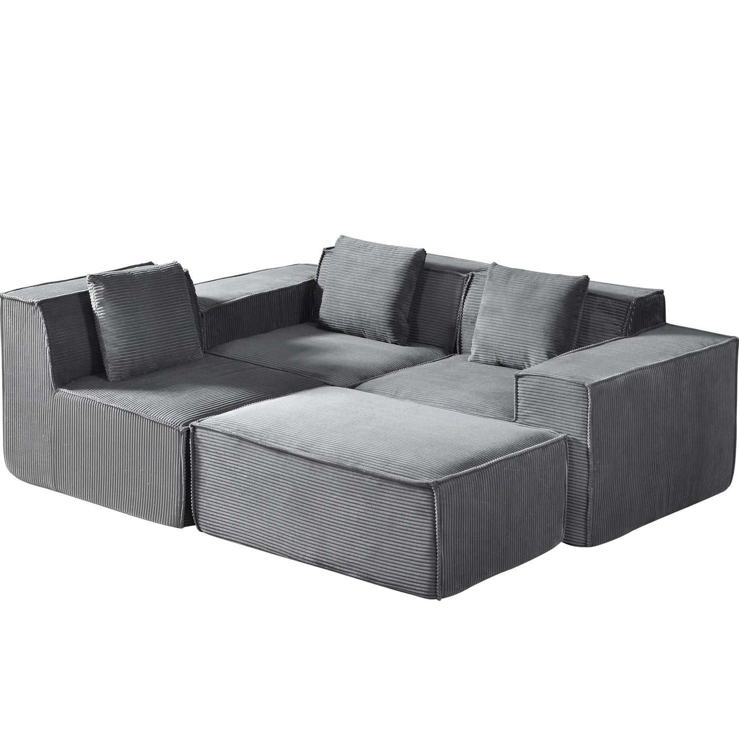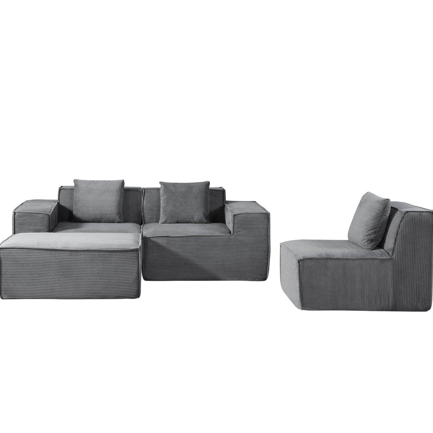 Container Furniture Direct Rowan Convertible Corduroy Sectional Couch with Ottoman & Pillows, Modular L Shaped Sleeper Sofa, Boneless Cloud Couch for Living Room Furniture, Dark Grey