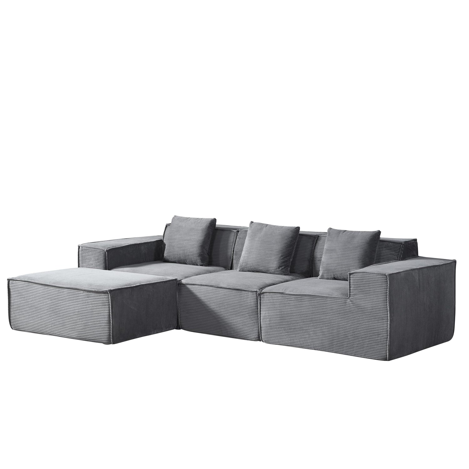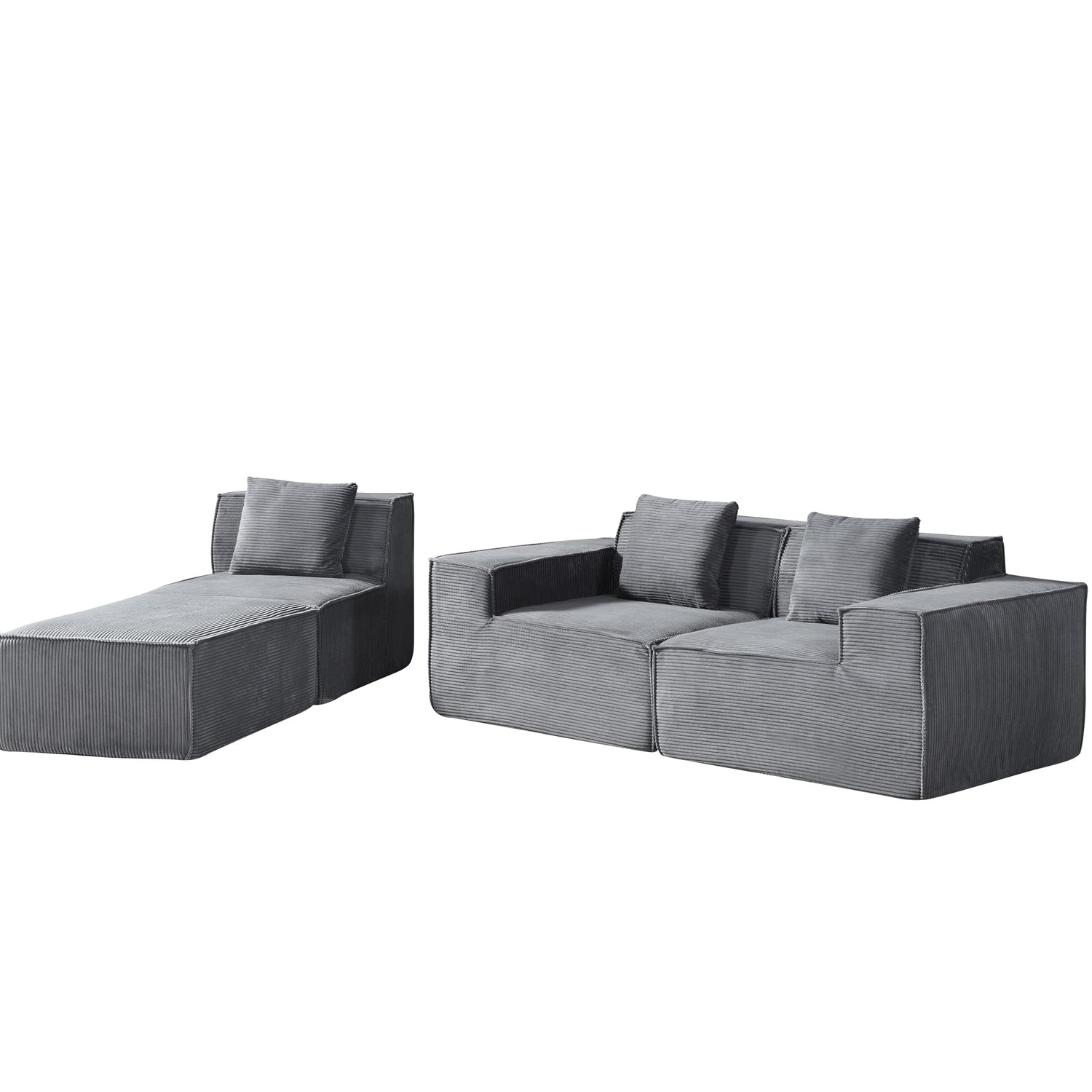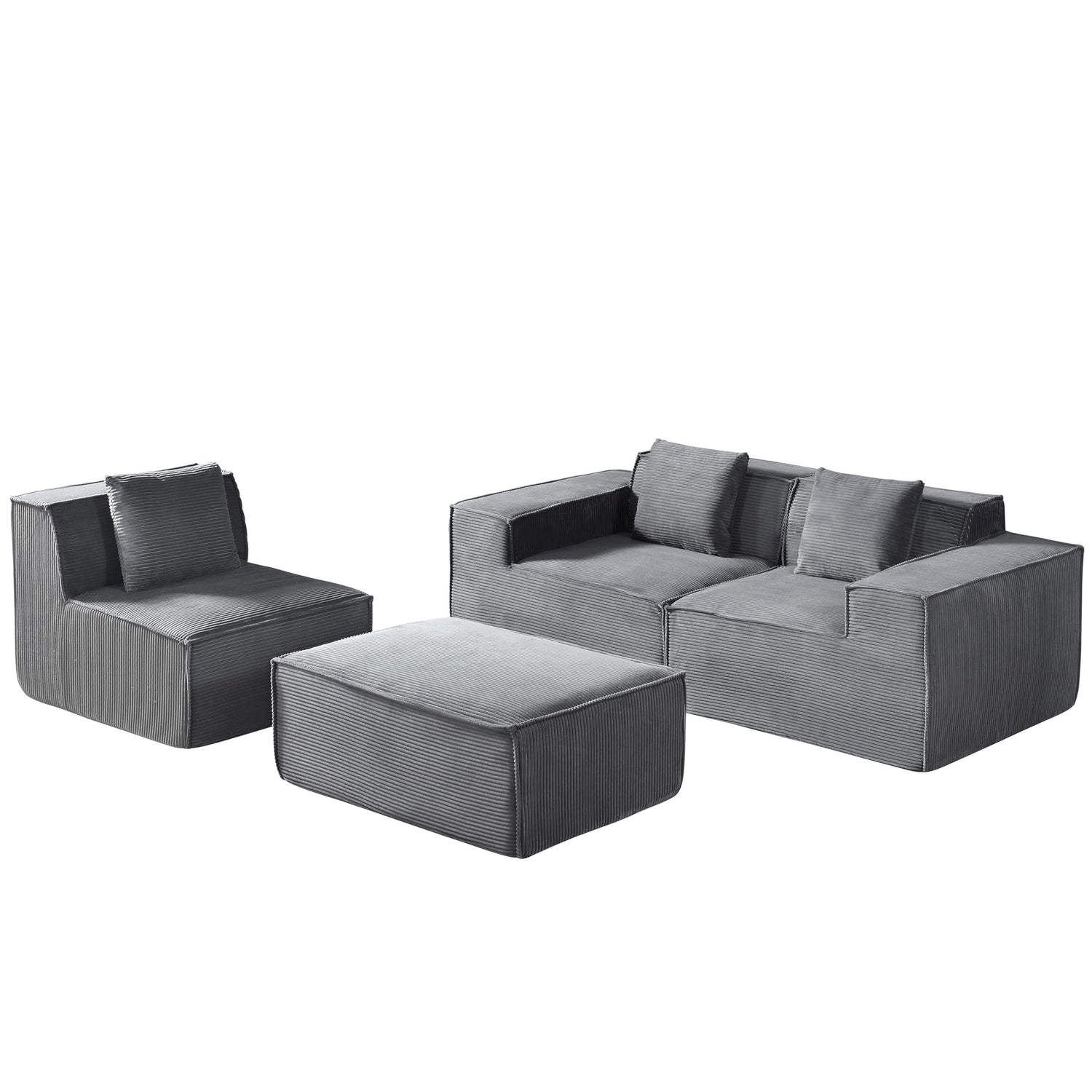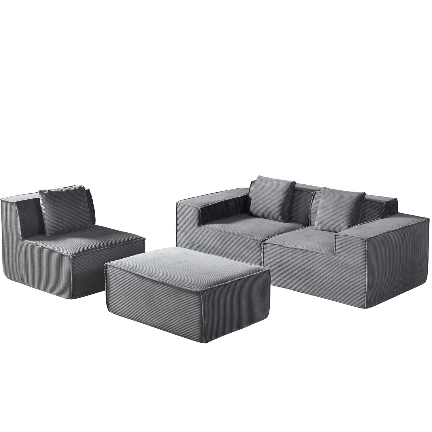 Container Furniture Direct Rowan Convertible Corduroy Sectional Couch with Ottoman & Pillows, Modular L Shaped Sleeper Sofa, Boneless Cloud Couch for Living Room Furniture, Dark Grey