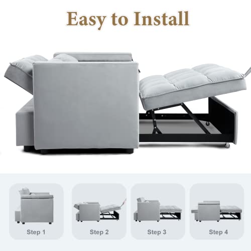 - High-Quality Material: The convertible sofa bed is made of high-quality velvet, which is soft, comfortable, and not easily pilled or wrinkled. The seat cushion and backrest cushion of the sleeper chair are filled with a high-density sponge that is resilient and comfortable, so you can enjoy your time relaxing! For extra comfort, this sofa bed comes with 2 soft pillows.