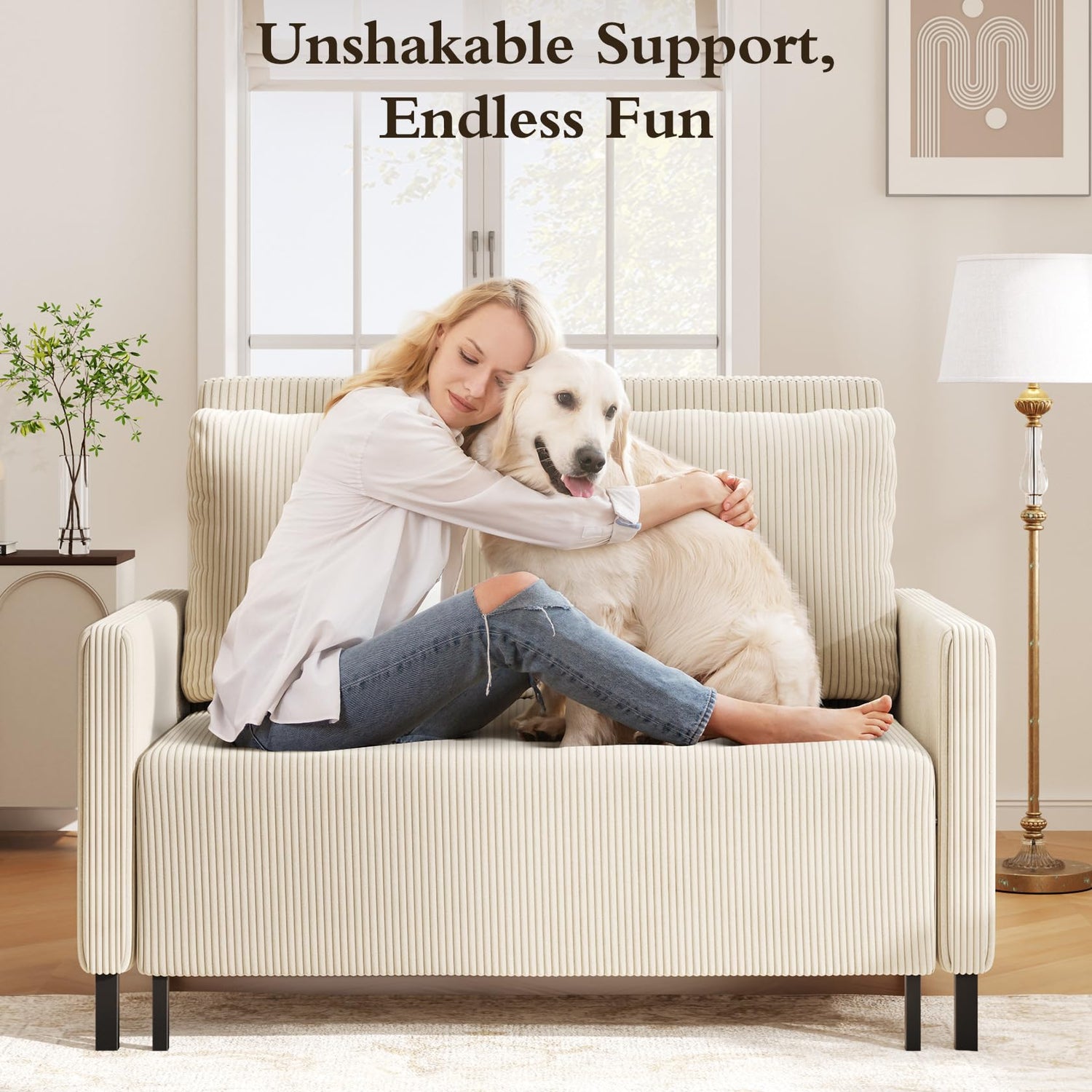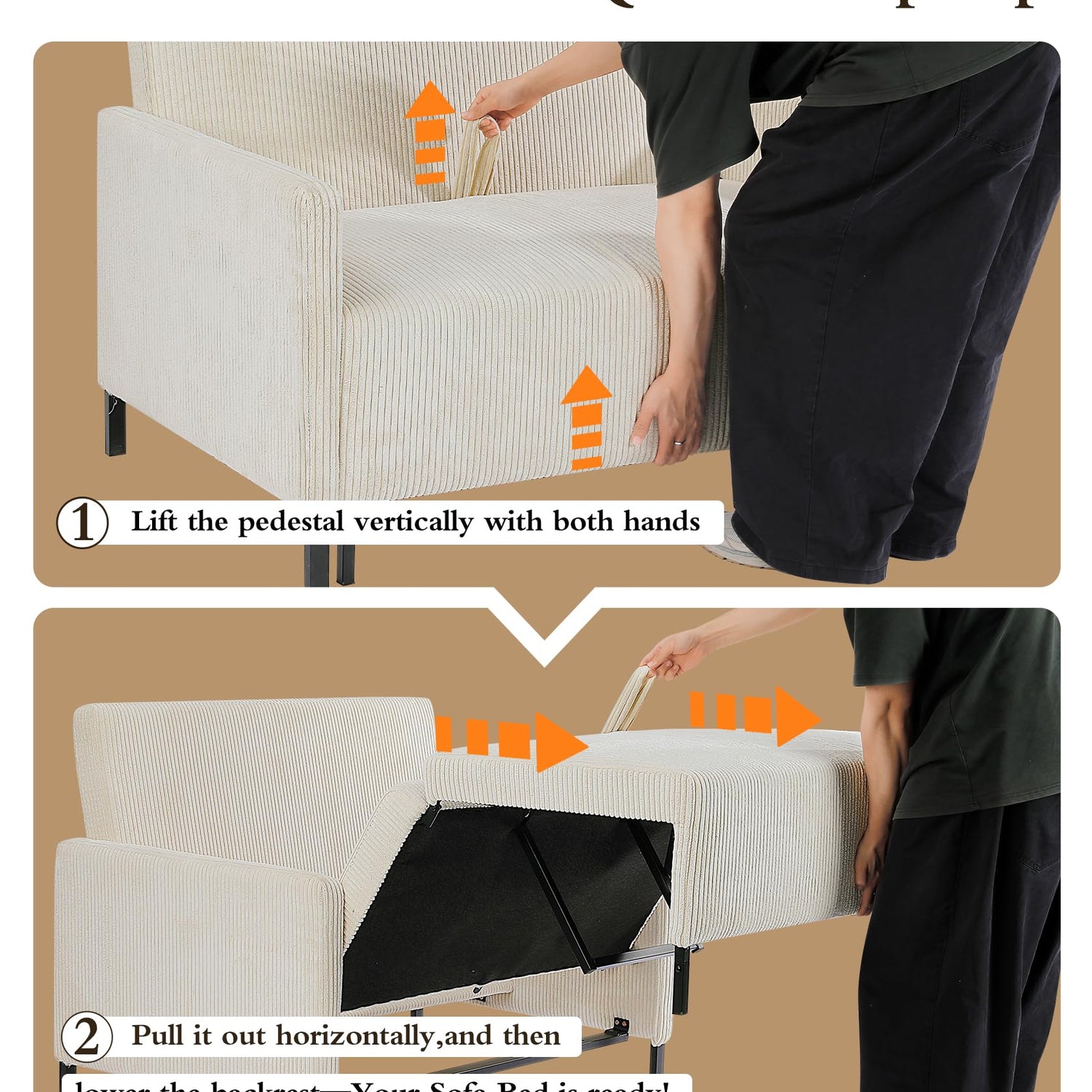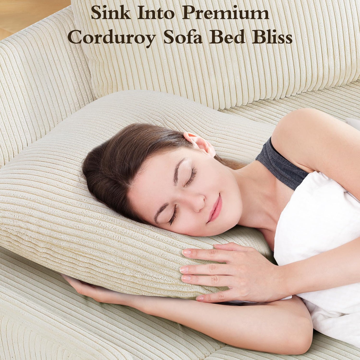 • 【Corduroy Comfort, Cozy Joy】Sink into the coziest convertible sofa bed around! Made from ultra-soft premium corduroy, small loveseat sleeper sofa's fabric feels silky smooth, stays fresh, and resists pilling and wrinkling—even after plenty of lounging. With a spacious 21" deep seat, you'll have all the room you need to stretch out and relax. Whether you're curling up for a movie marathon or winding down after a long day, this corduroy couch bed will quickly become your ultimate comfort zone!