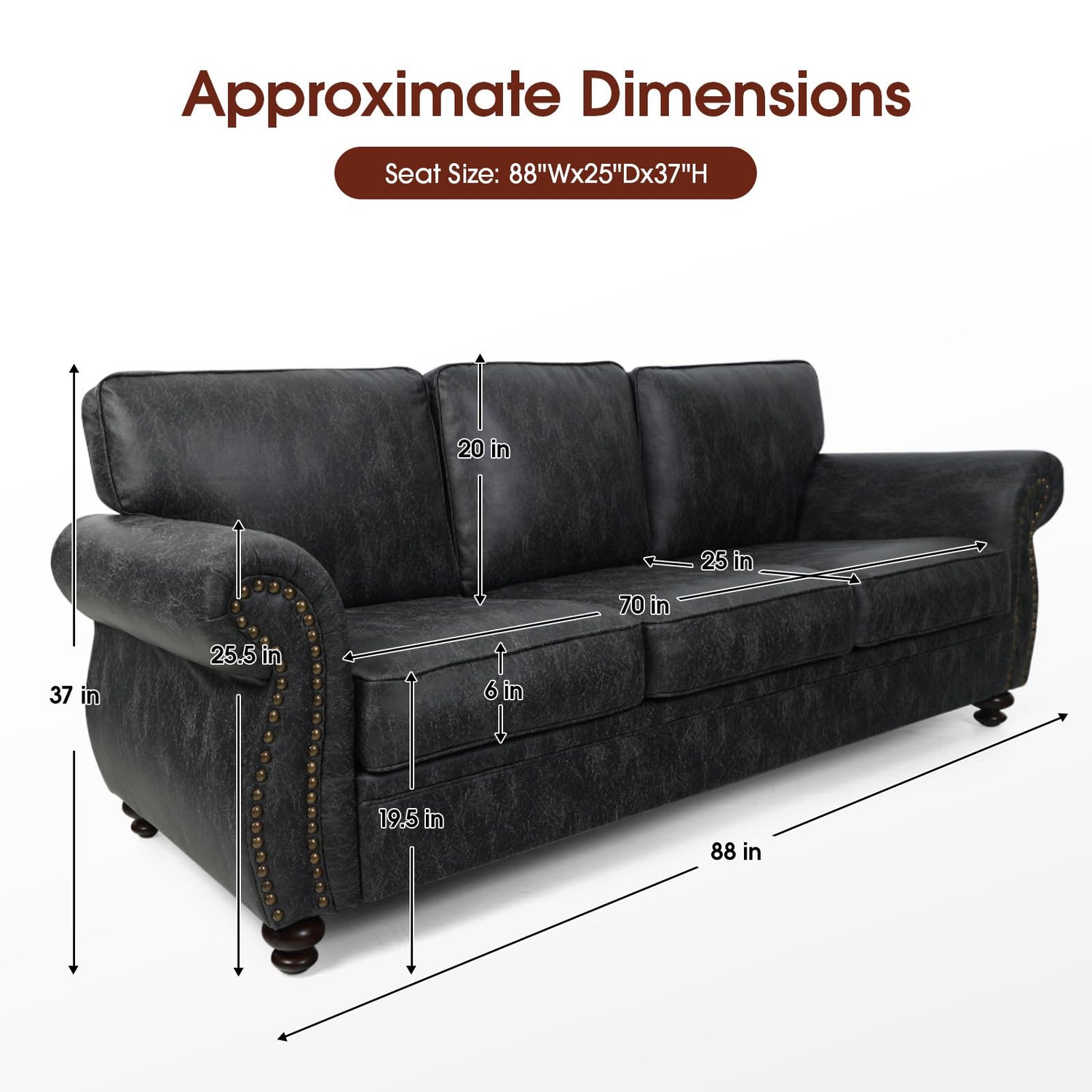 - Spacious and Comfortable:This couch provides 23" extra-deep seating and a thick backrest that are filled with top-notch sponge and covered by breathable faux leather. 105° Ergonomically designed for optimal comfort, it feels like sitting on a cloud.