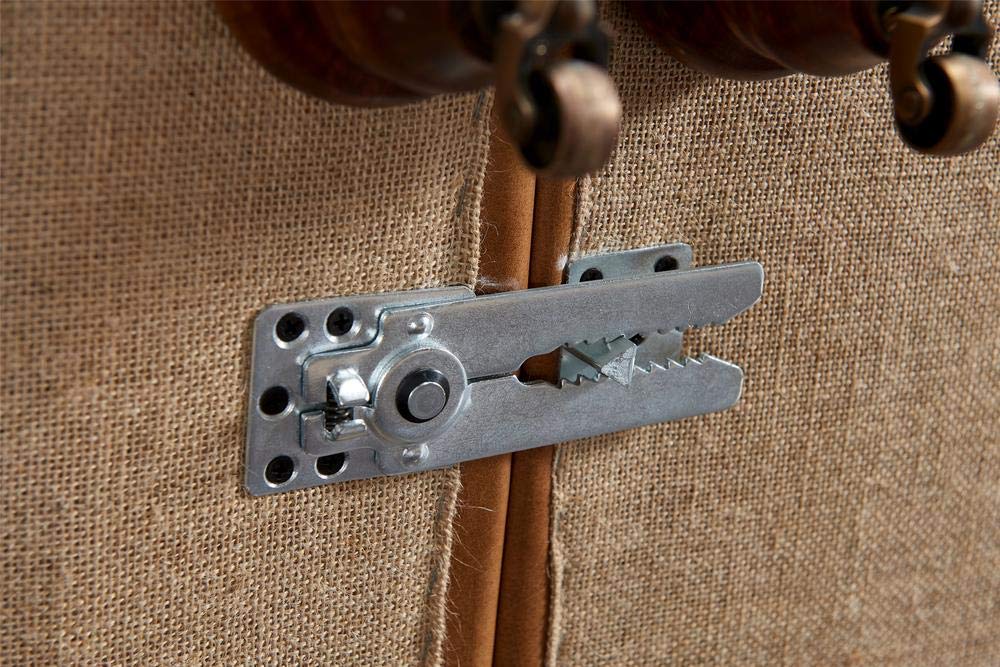 - Caster wheels, turned wood feet.