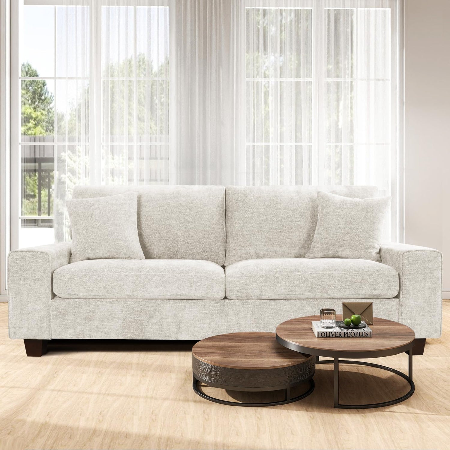 Czpalo 71.25" Chenille Sofa Couches for Living Room, 2 Seater Sofa with 2 Pillows, Small Modern Loveseat Couch for Small Spaces, Office. (Beige, 71.25 inches)