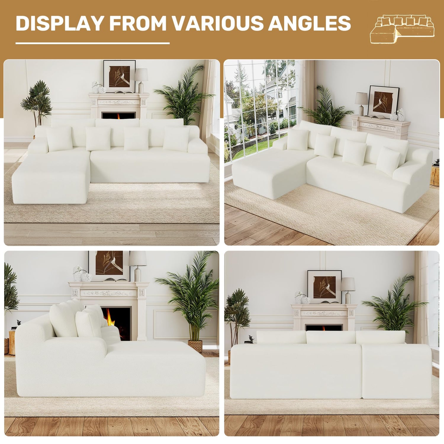 • Personalized combination: This deep seated sofa does not require assembly and has multiple different arrangement modes; You can combine the sofa as needed, add personalized style to your living space. The sectional sofa can match different scenes