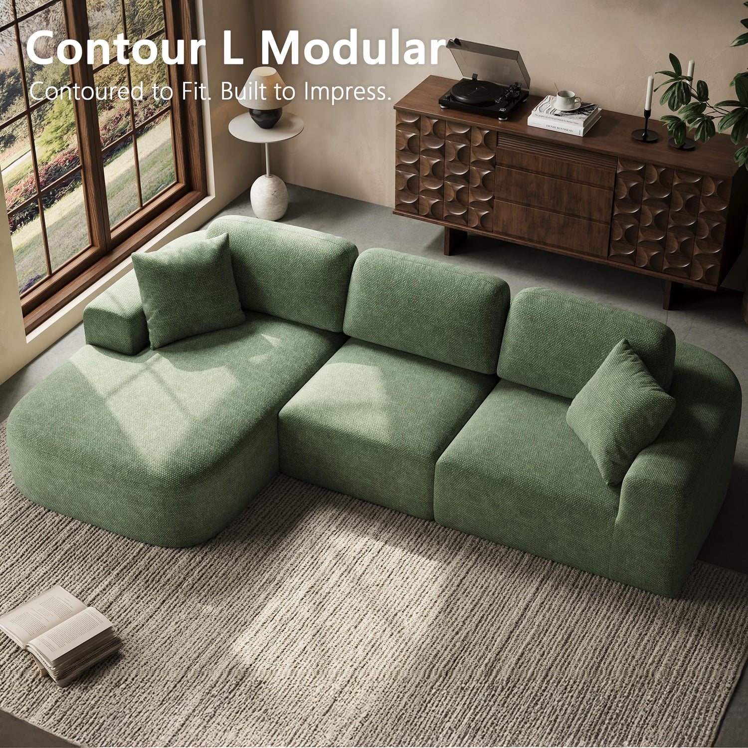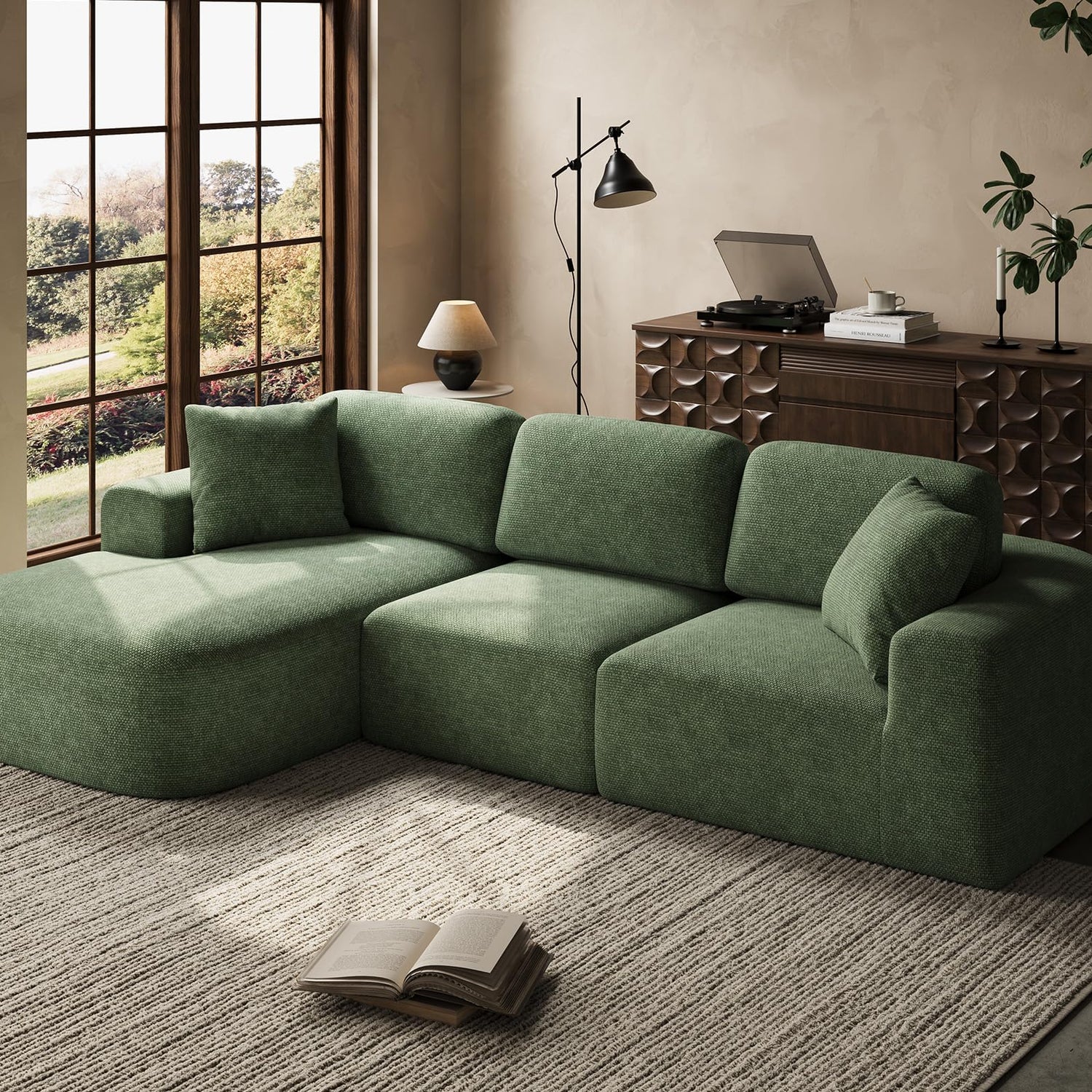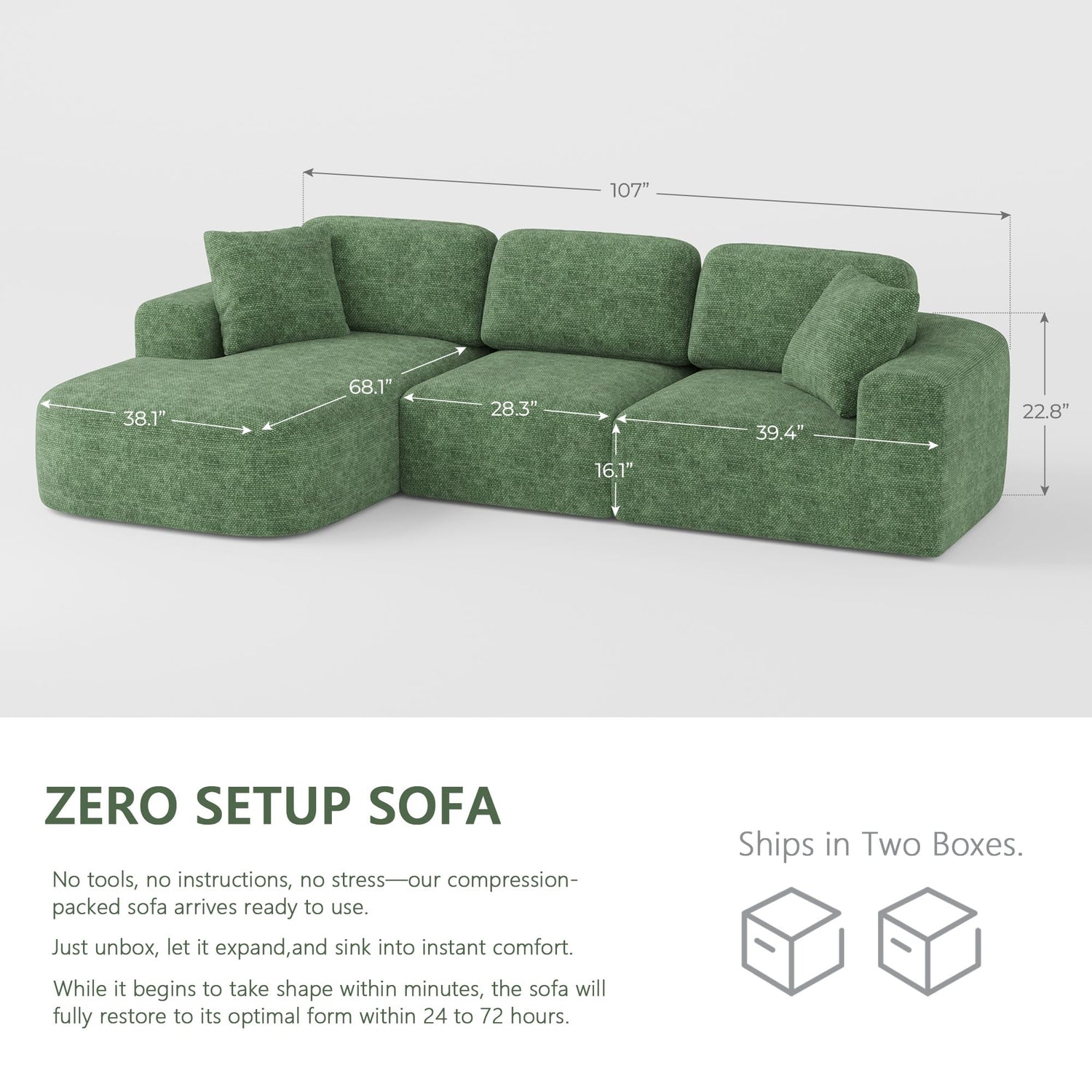 Dowinx 107'' Modular Sectional Sofa Couch with Chaise, No Assembly Required, Modern Woven-Textured Upholstery, Convertible L-Shaped Design for Living Room – Forest Green