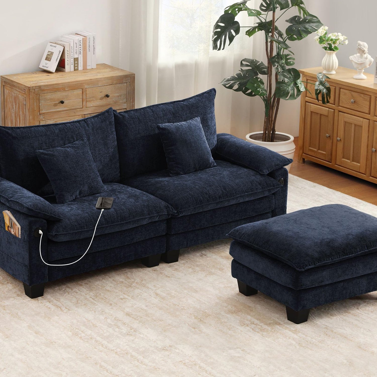 • 【Charging and Storage】Equipped with USB ports on both sides for convenient device charging and side pockets for magazines, tablets, and remotes. Designed to fit seamlessly into your lifestyle.