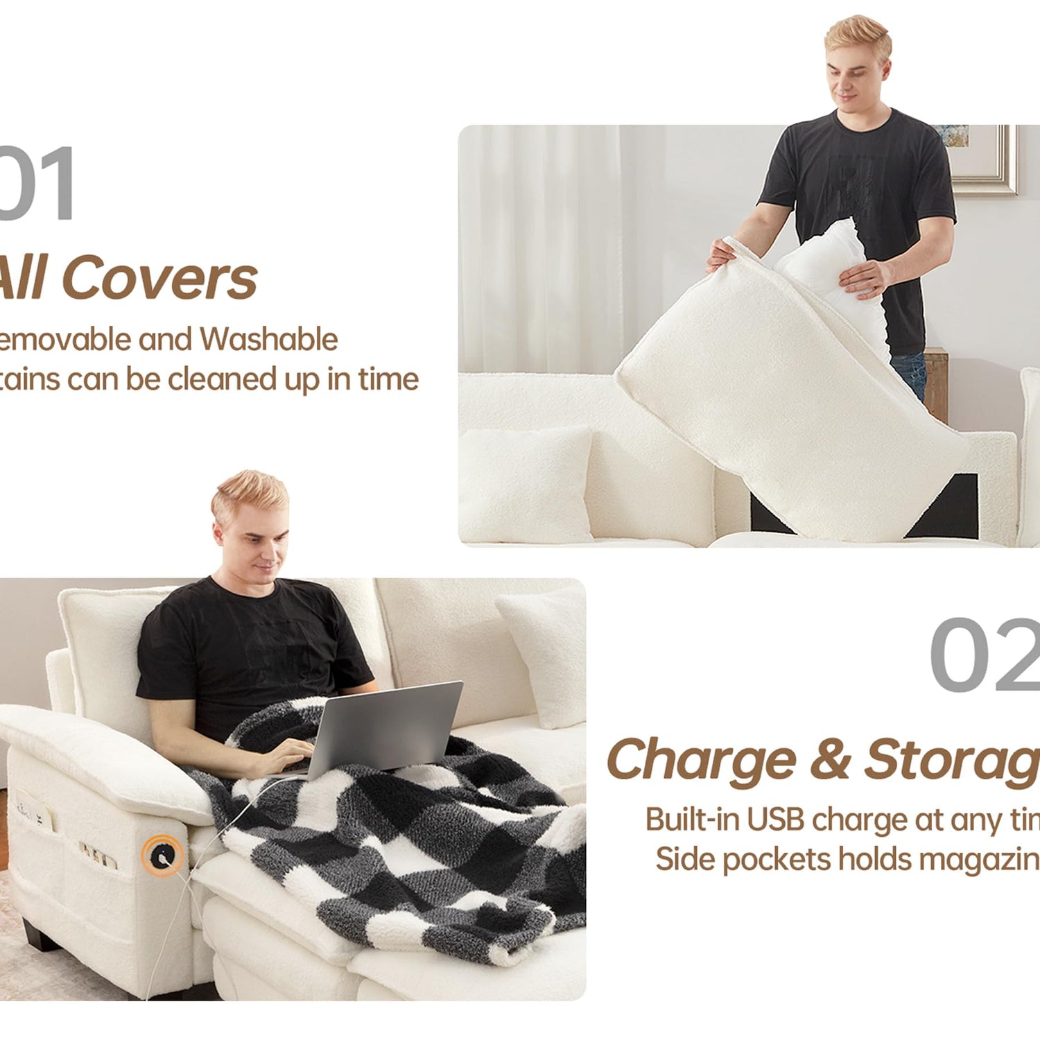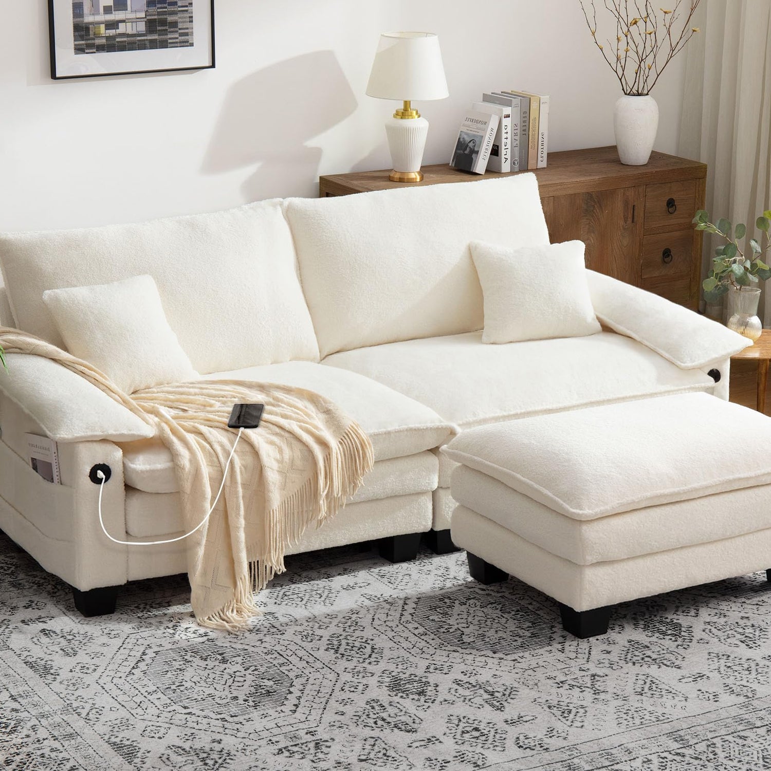 DURASPACE Modular Sectional Sofa L Shaped Cloud Couch with USB, Side Pocket, 76.8’’ Loveseat with Movable Ottoman, Comfy Deep Seat Sleeper Sofa for Living Room, Apartment, Office (Boucle White)