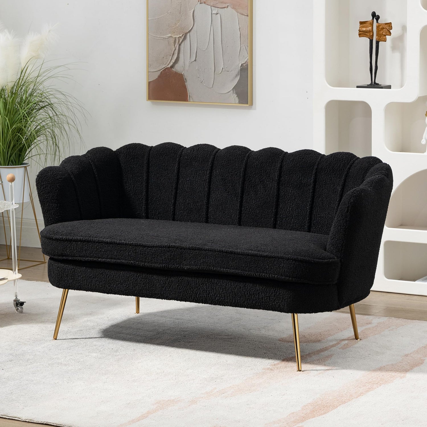 DWOYFO 59” Small Modern Teddy Loveseat Sofa, 2-Seater Sofa with Gold Metal Legs, Small Couch with Flower Shaped Back for Living Room Bedroom Office (Teddy, Black)