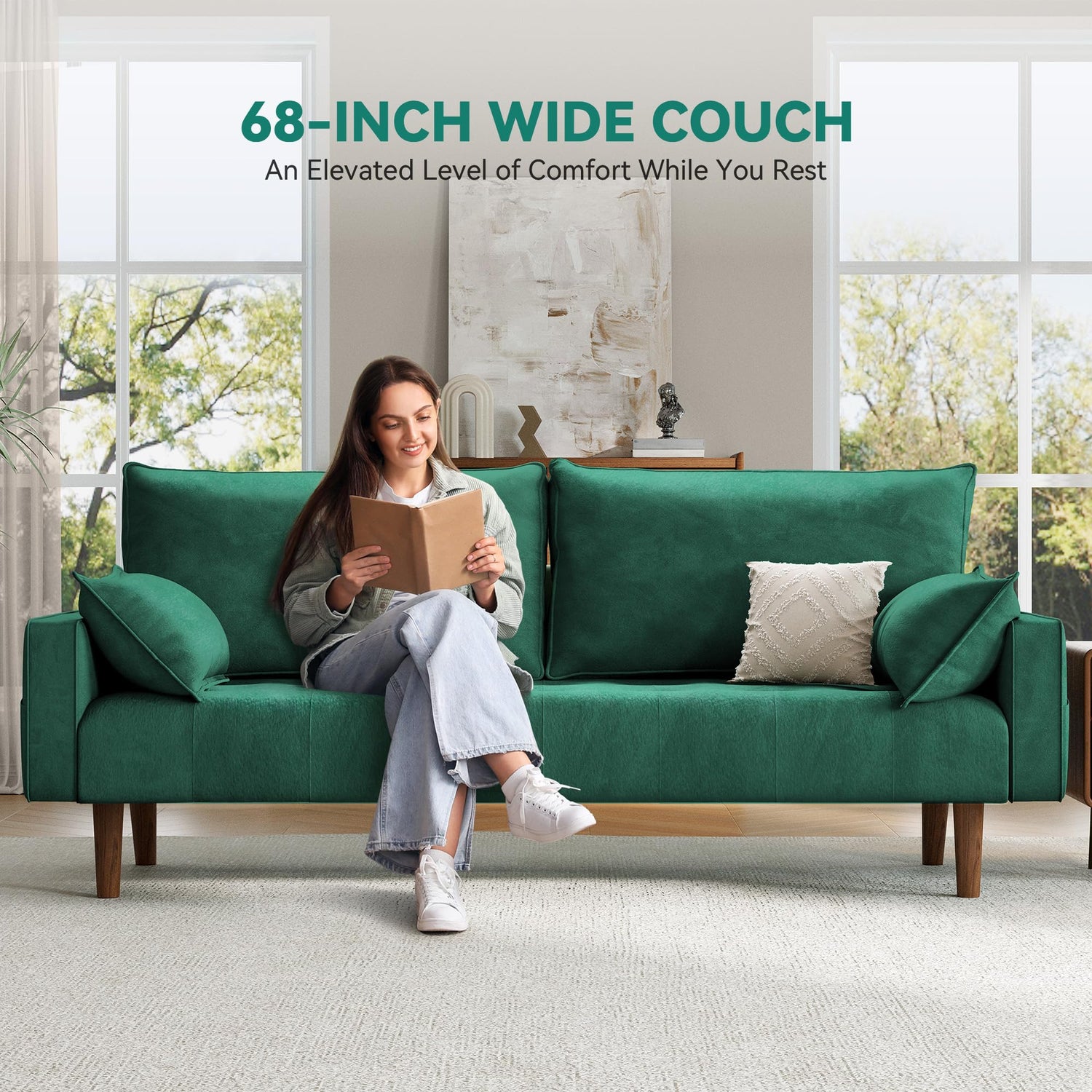 - Sturdy Solid Wood Feet: Our green sofa boasts solid wood feet and a reinforced frame, providing solid support for 2-3 people. Its robust design ensures it’s ready for all your lounging, snuggling, and entertaining needs