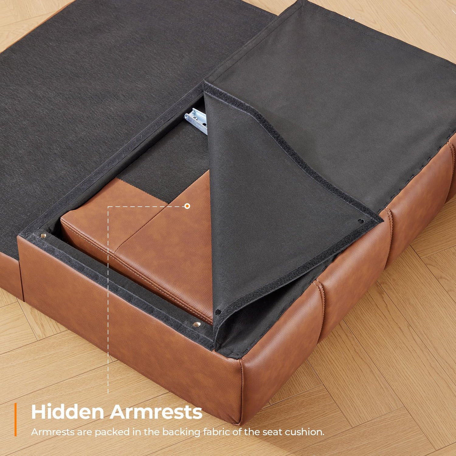 • Superior Craftsmanship - Every detail of the faux leather couch is made by exquisite craftsmanship. The seat is padded with high quality and high resilient foam, providing a comfortable seating experience. The legs of sofa are made of strong and durable heavy-duty metal pillars that can hold up to 600 lbs. Pockets on both armrests allow you to store cell phones, tablets, magazines, remotes and other essentials, design for modern convenient living.