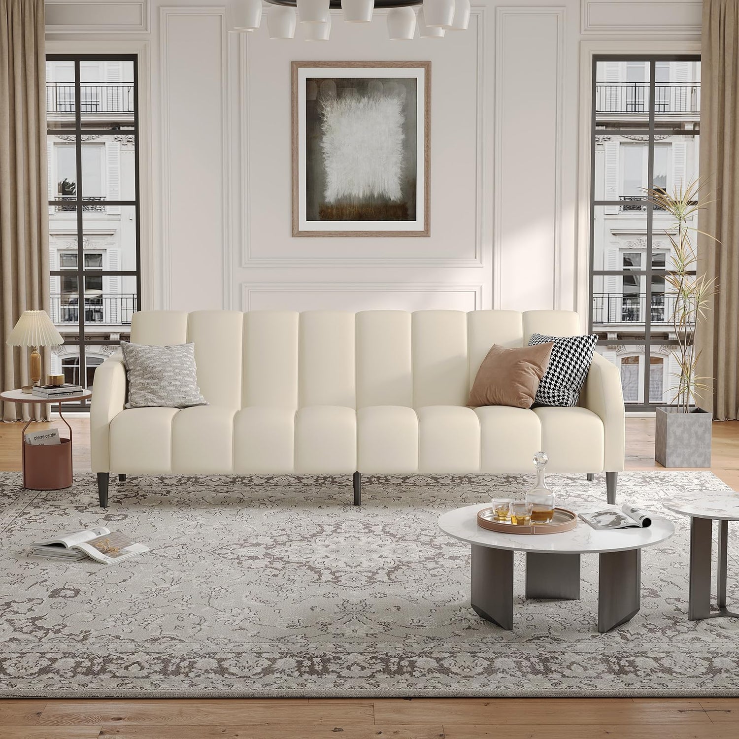 • Superior Craftsmanship - Every detail of the faux leather couch is made by exquisite craftsmanship. The seat is padded with high quality and high resilient foam, providing a comfortable seating experience. The legs of sofa are made of strong and durable heavy-duty metal pillars that can hold up to 600 lbs. Pockets on both armrests allow you to store cell phones, tablets, magazines, remotes and other essentials, design for modern convenient living.