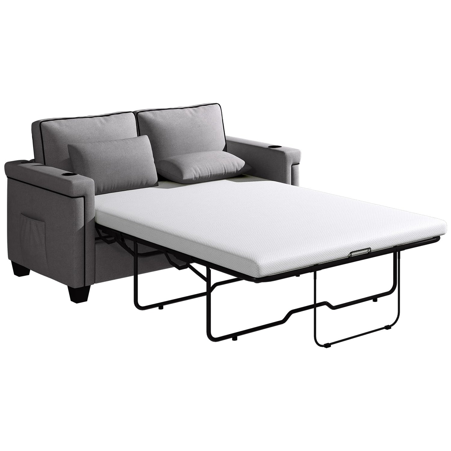 Fadware Pull Out Sofa Bed, Full Size Sleeper Sofa Couch with Memory Foam Mattress, 2 in 1 Convertible Pullout Couch Bed with USB Charging Ports for Compact Living Space, Apartment, Office, Grey