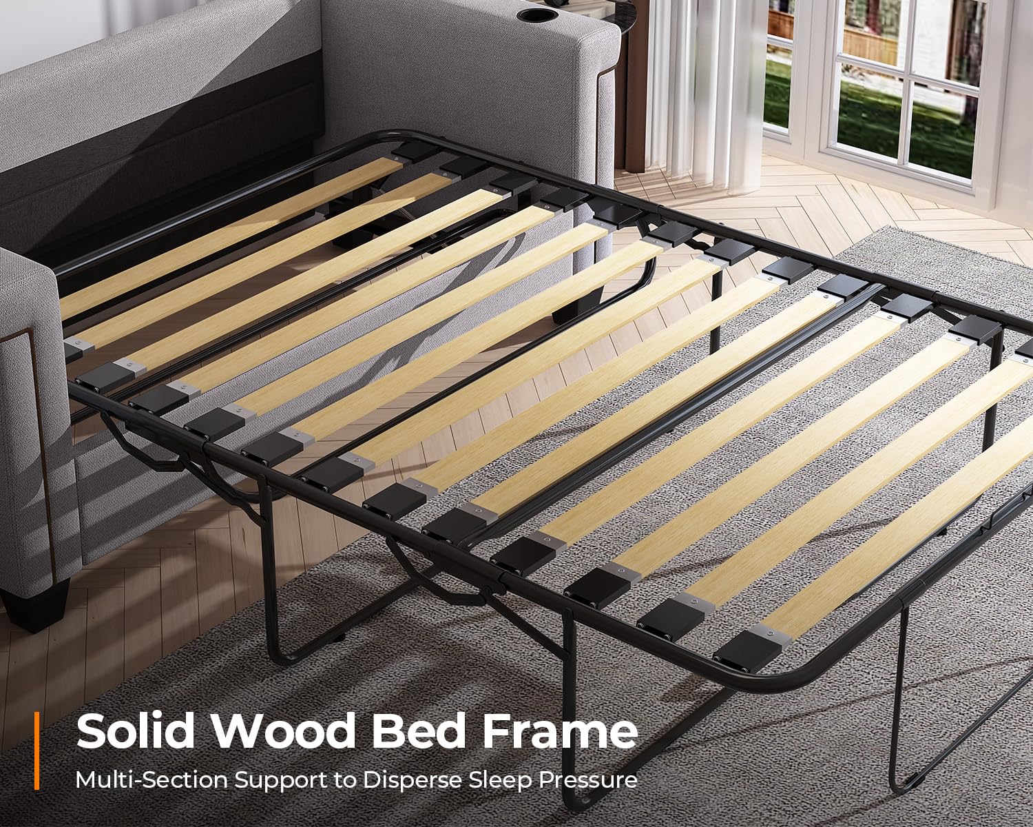 • Solid Wood Bed Frame for Optimum Support: Our pullout sofa bed with evenly spaced real solid wooden strips that are evenly stressed, can provide better support for the mattress, which can lead to a more comfortable sleeping experience and help to prolong the life of the mattress.
