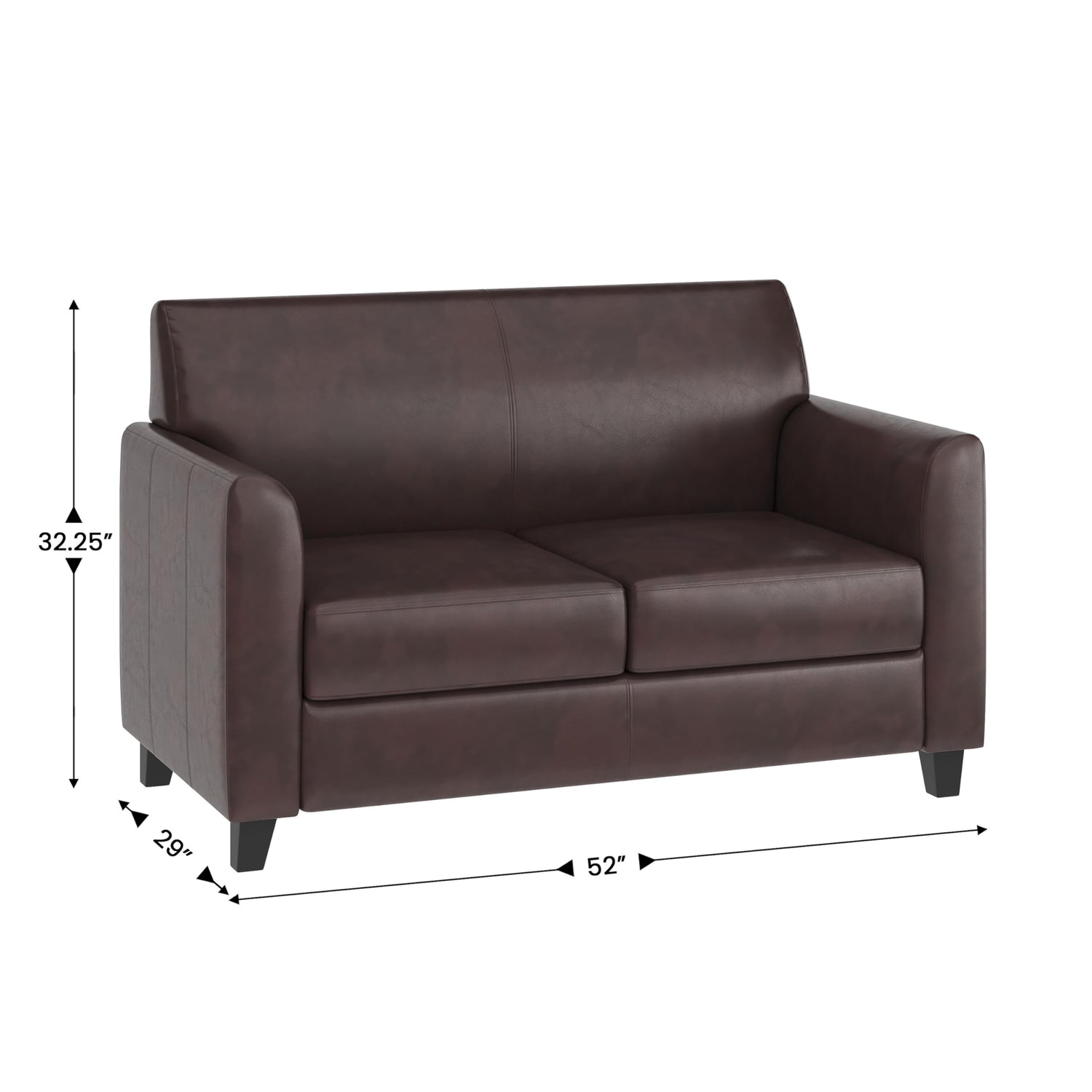- PRODUCT MEASUREMENTS: Overall Size: 52"W x 29"D x 32.25"H; Seat Size: 42"W x 19.5"D x 17.5"H; Back Size: 50"W x 16"H; Arm Size: 24.25"H from floor; 8"H from seat