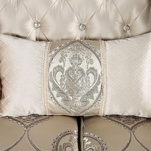 The rolled arms and button-tufted back with crystalline buttons offer a regal appeal.