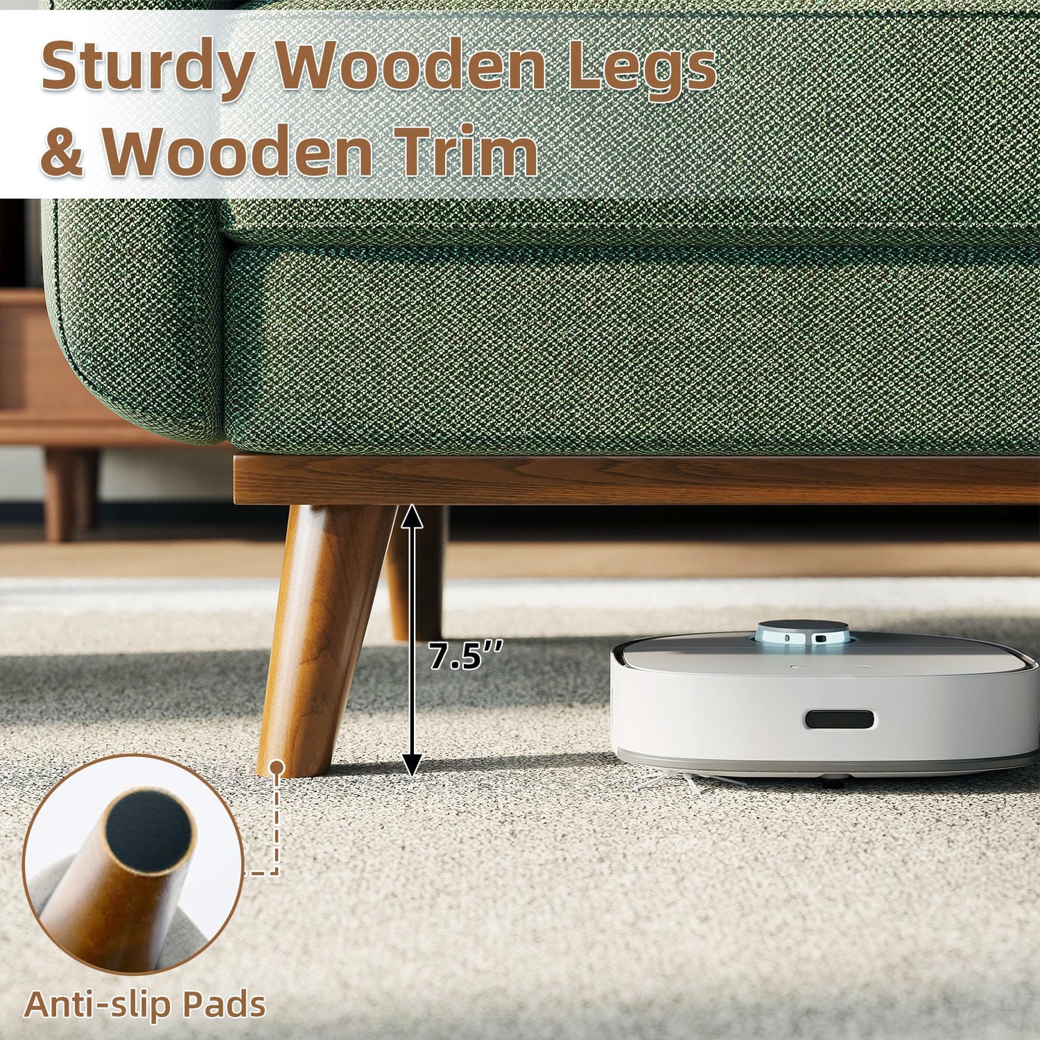 - Sturdy and Durable: Made with a sturdy wooden frame and high-quality springs, this loveseat can support up to 600 LB. The wood legs are equipped with floor protectors to ensure stability while protecting your floors.