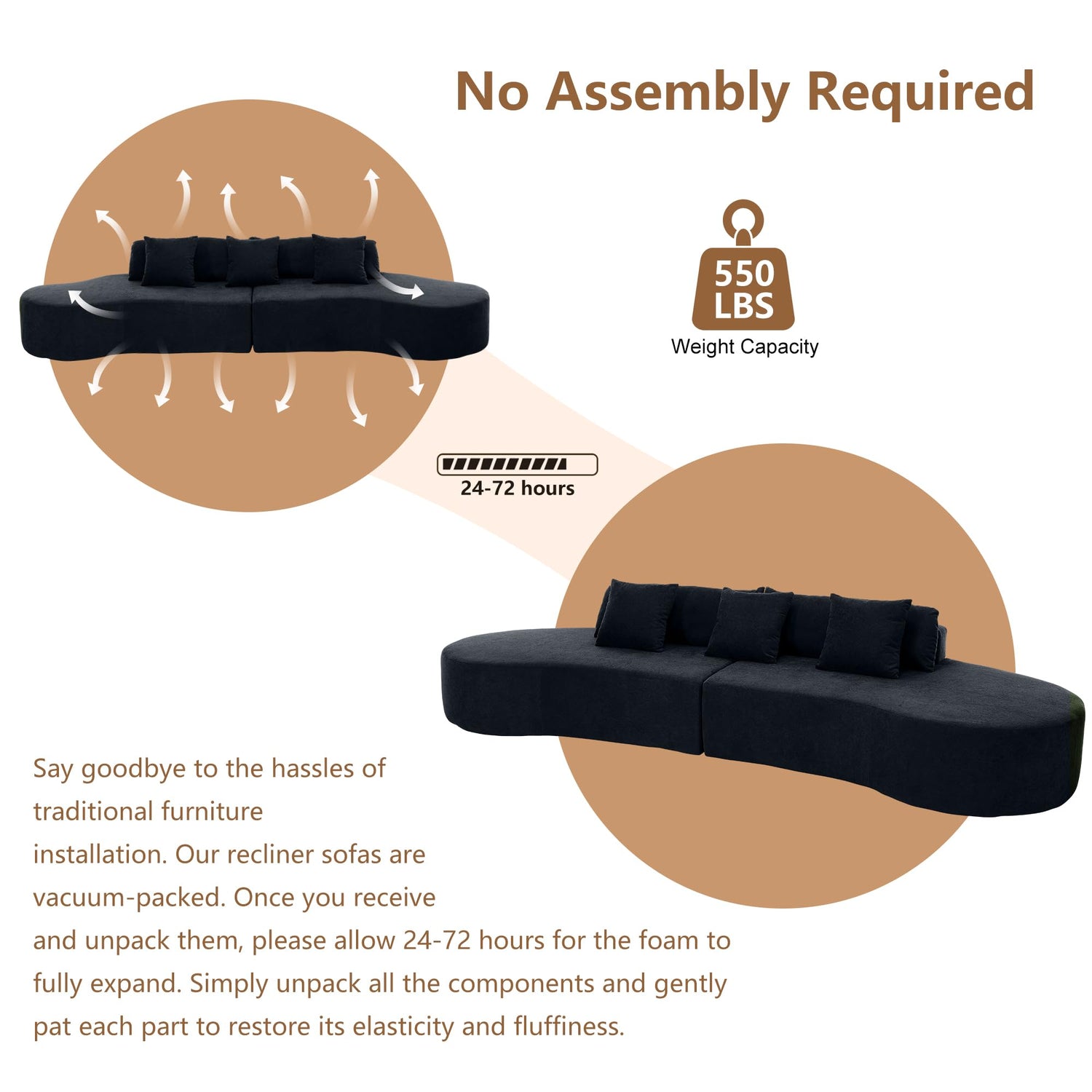 - MODULAR SECTIONAL SOFA & EASY SETUP:Designed with flexibility in mind, this modular sectional sofa separates into two pieces, allowing for customized layouts to fit your home. Delivered as a compressed curved couch, it requires no assembly—just unbox, unfold, and enjoy. Perfect for moving into apartments or setting up quickly in any room.